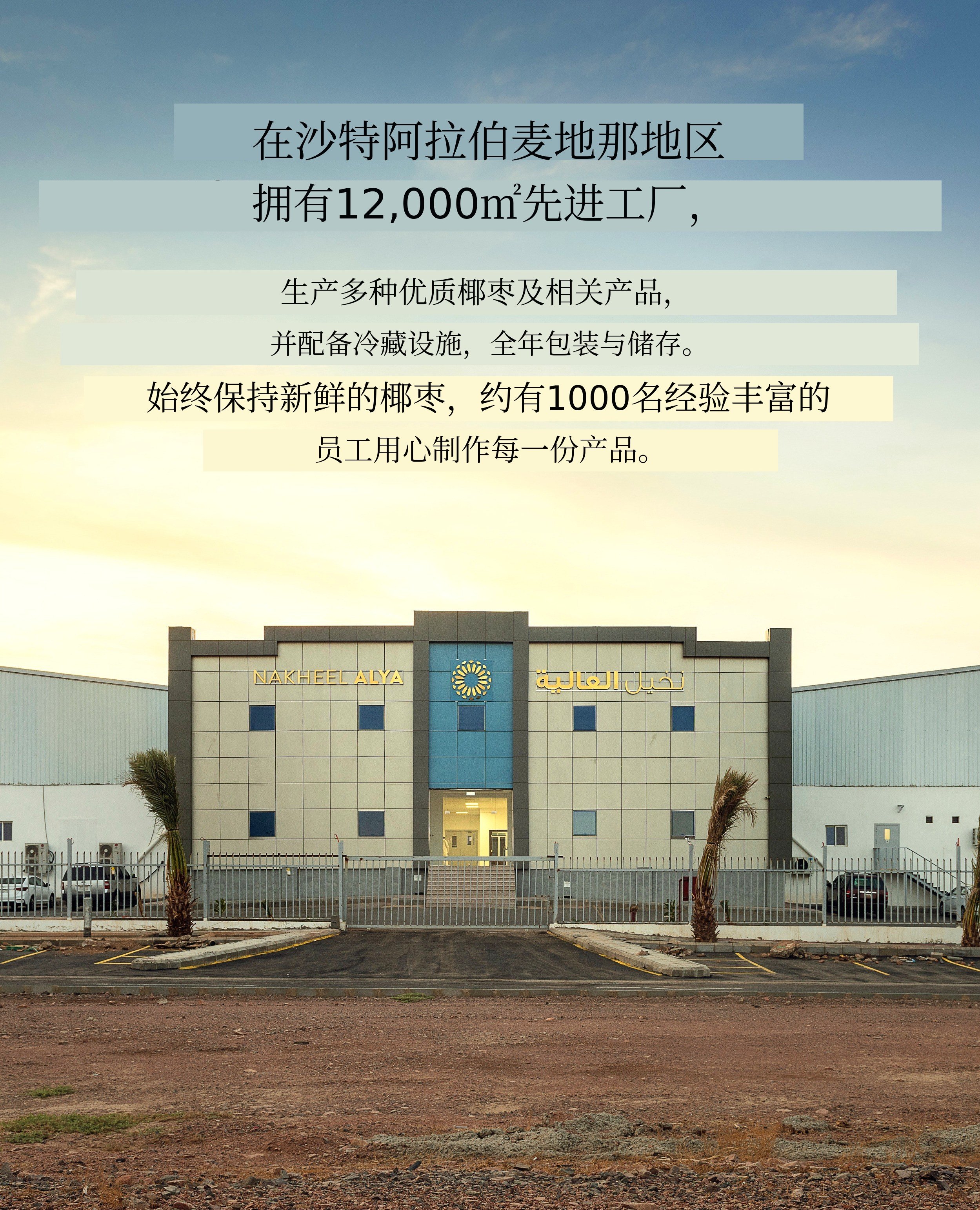 位于沙特阿拉伯麦地那地区,占地12,000㎡的先进生产设施,是世界顶级的椰枣加工专业工厂。