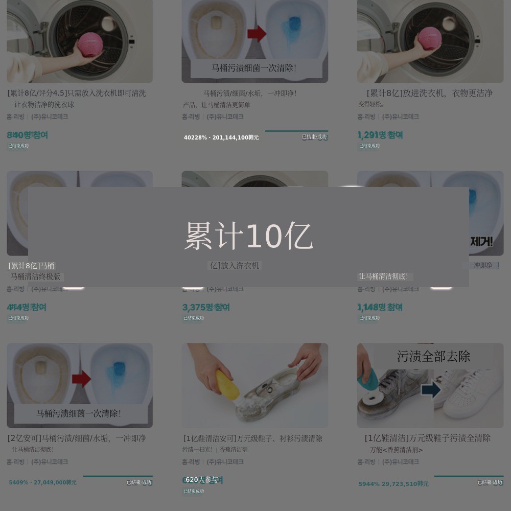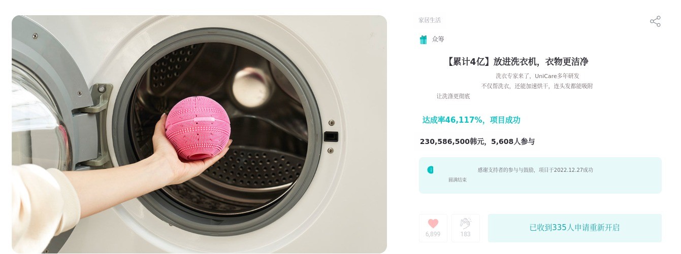 UNICARE与Wadiz支持者们一起,开启了马桶清洁球、香蕉清洁剂、汽车洗发水、洗衣球等众多新品的旅程。