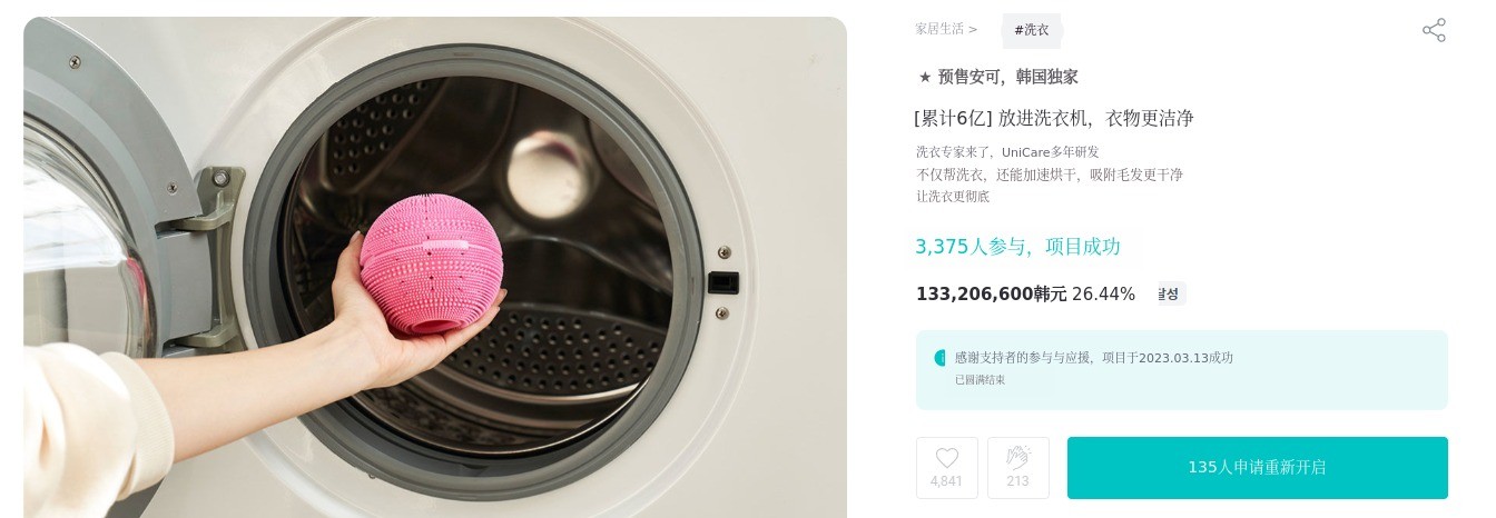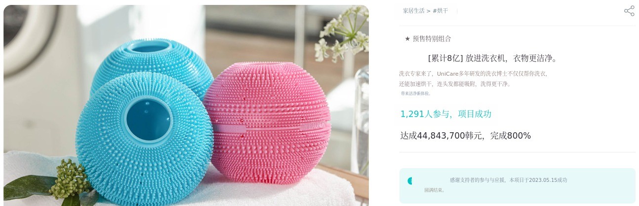 希望通过Wadiz,大家能感受到洗衣球的便利。