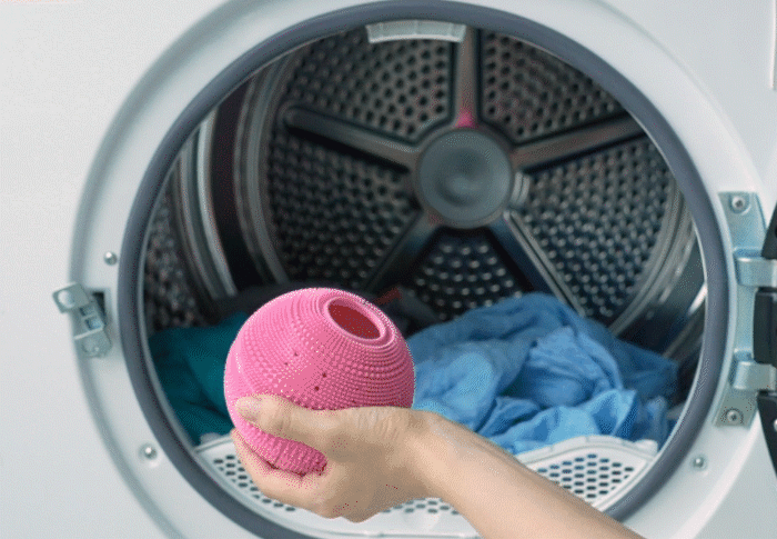 市面上的塑料洗衣球无法在烘干机中使用。但洗衣博士采用耐高温硅胶材质,可与烘干机一起使用。