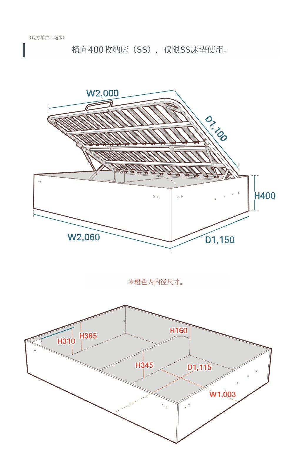 -升降横向型(400/600)收纳床SS:首都圈/京畿(40,000韩元) | 地方(50,000韩元)