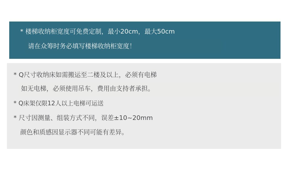 A. 公告的床规格部分尺寸根据测量方法、人员、工具不同,可能有10~20mm的误差,