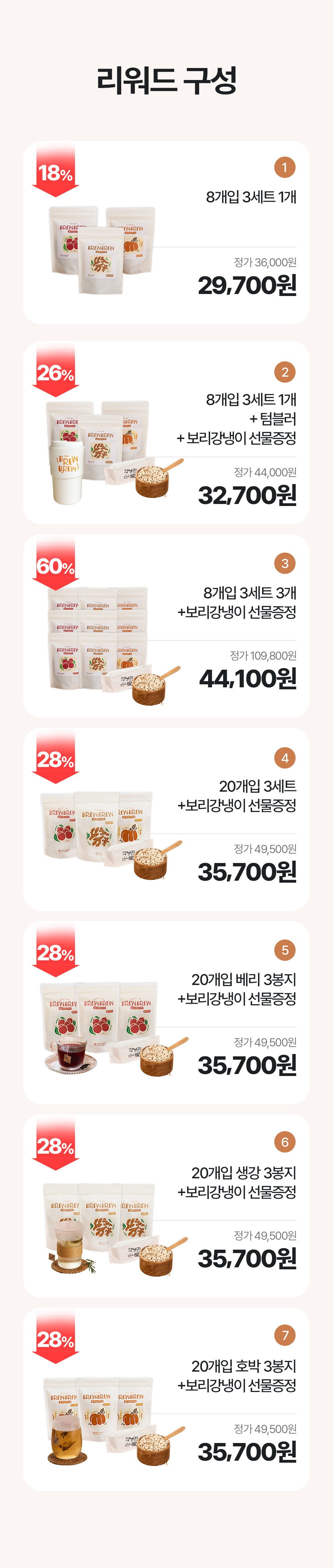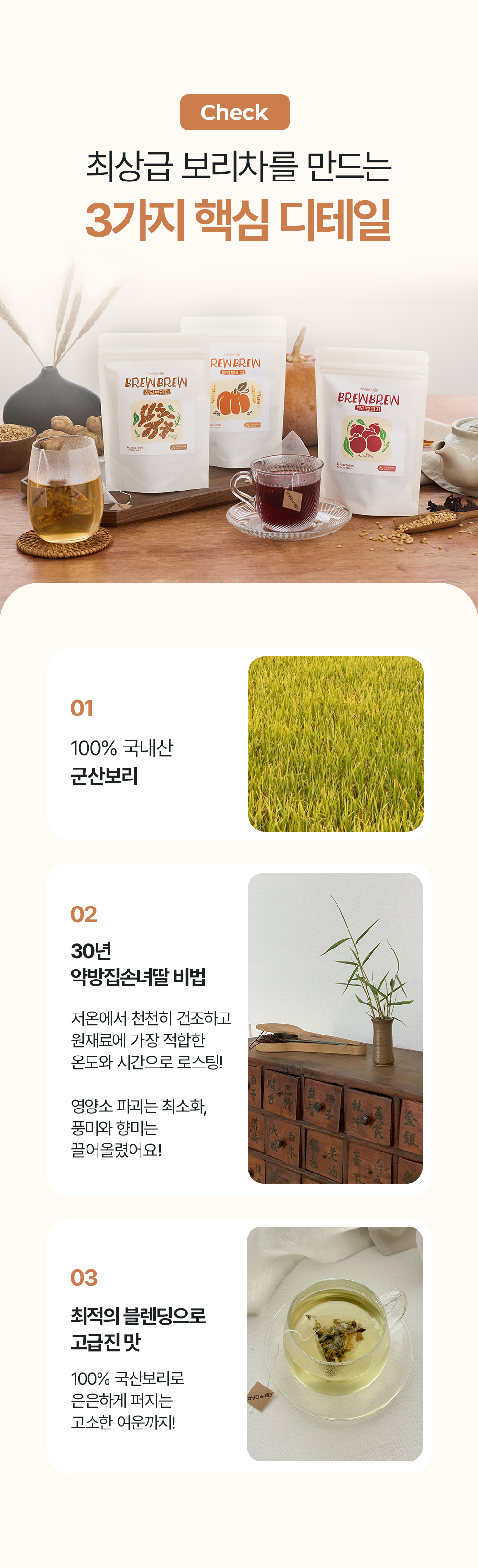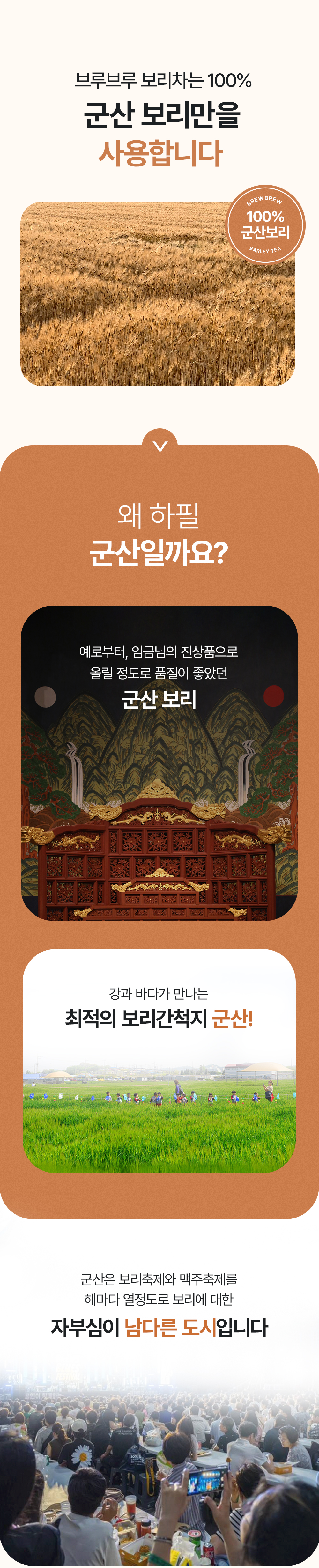 1. 🍵 三款混合大麦茶 - 南瓜、浆果、生姜健康美味结合 2. 🌾 100%群山大麦 - 被认可为皇室贡品的优质大麦 3. 🎁 众筹专属优惠 - 多样套装优惠及赠送大麦零食