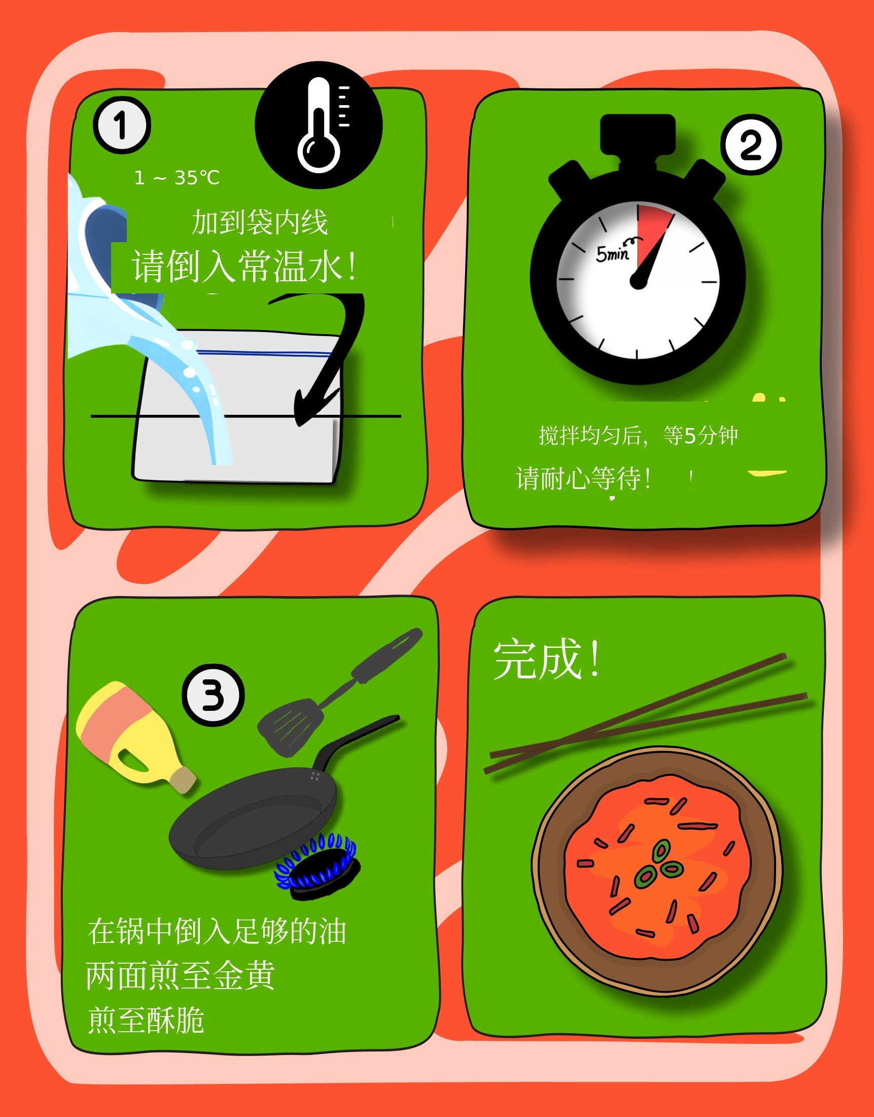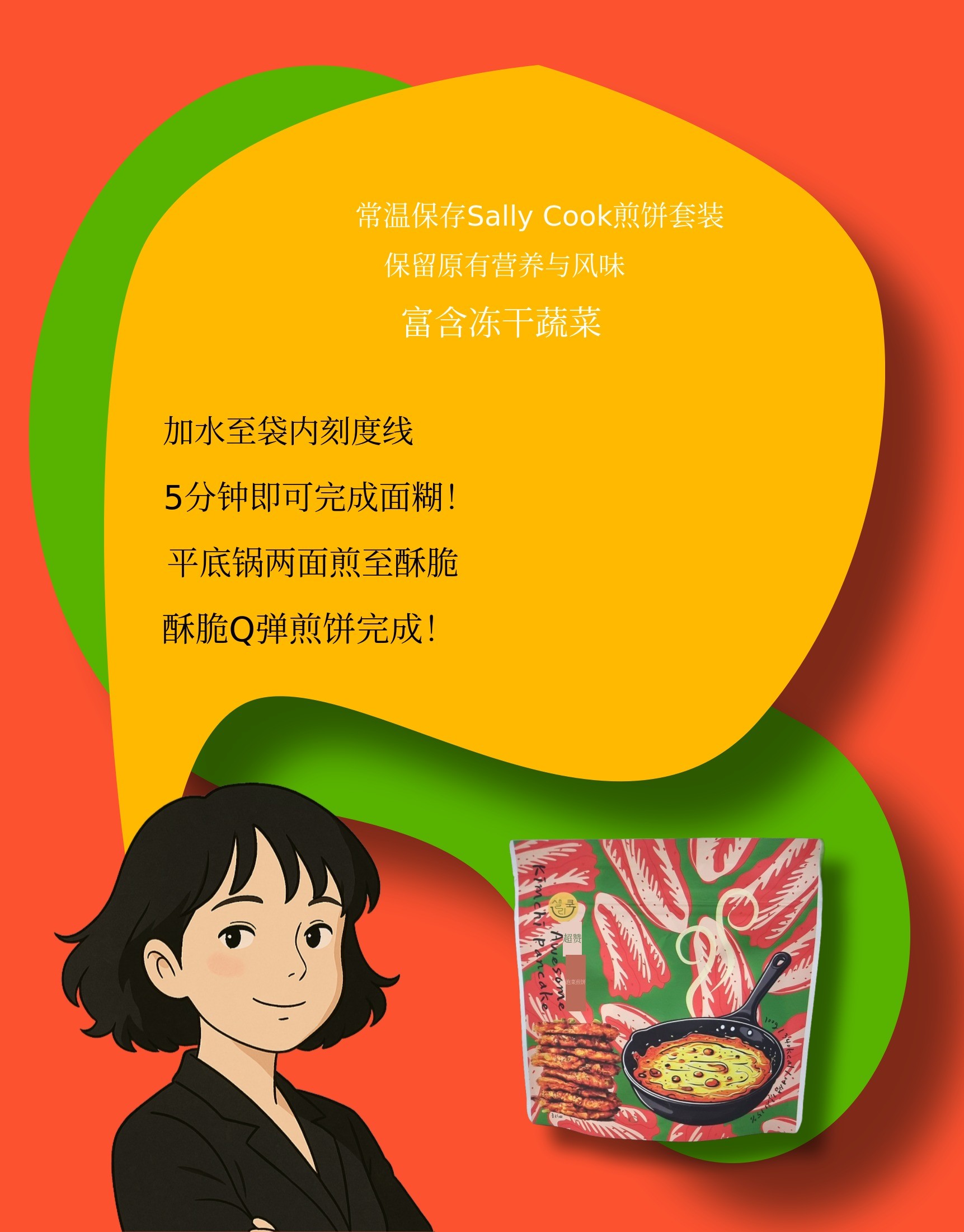 1. 🥞 常温煎饼套装 - 只需加水5分钟即可做出酥脆弹牙煎饼 2. 🌿 冻干蔬菜与泡菜 - 富含新鲜冻干蔬菜和酸爽泡菜 3. 🎁 全球口味认可 - 通过国际展会和快闪活动赢得信赖