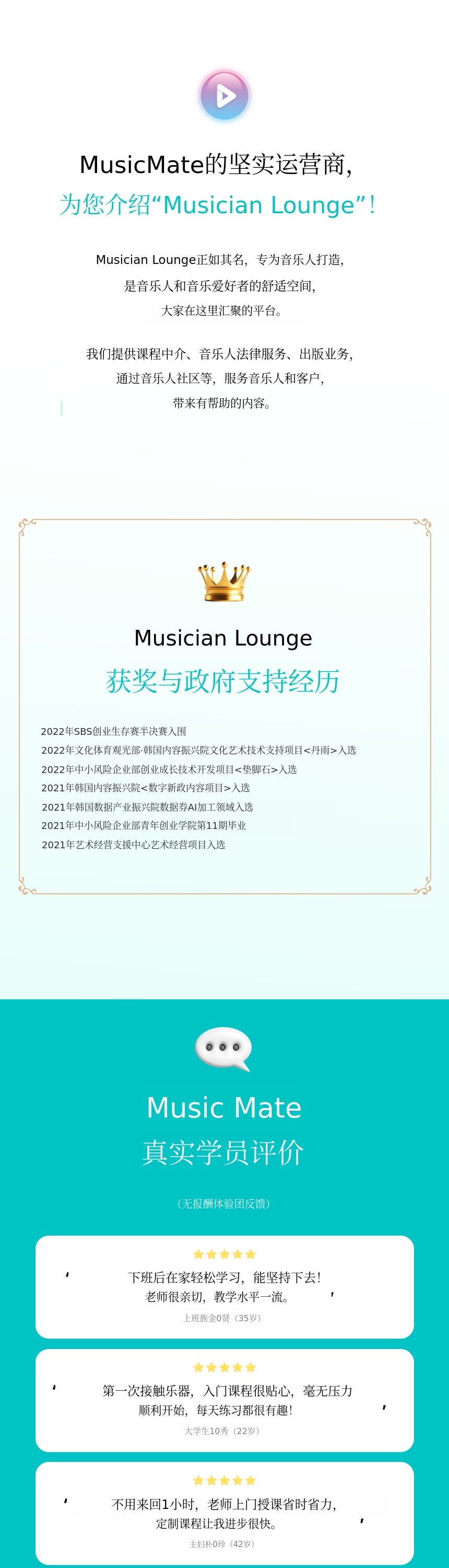 我们将成为连接所有热爱音乐之人的空间,Musician Lounge。谢谢。