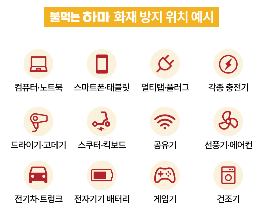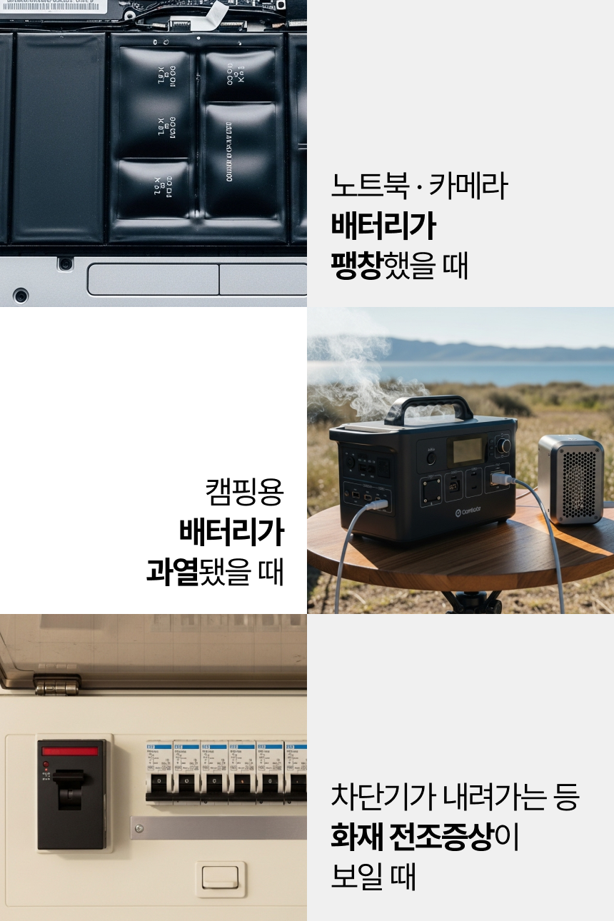 전동 킥보드, 전동 스쿠터, 캠핑용 배터리, ESS 시스템처럼 배터리가 많고 뜨거운 공간에 난연 장치가 없다면, 폭발의 불씨가 될 수 있습니다.