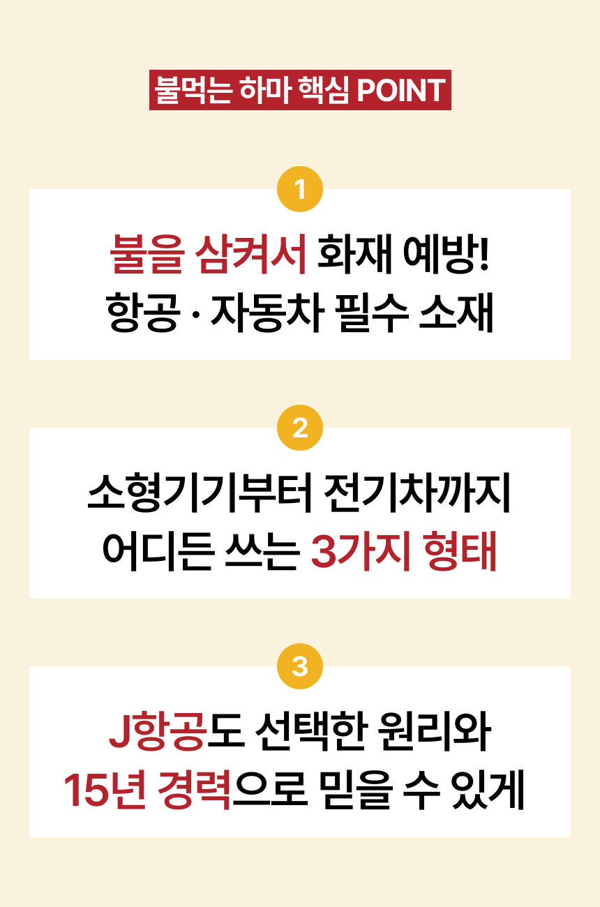 때문에 아이 방, 반려동물 공간, 손이 자주 닿는 곳에도 걱정 없이 사용할 수 있어요. 초기 화재 시에도, 평상시에도 가족의 안전을 지킵니다.