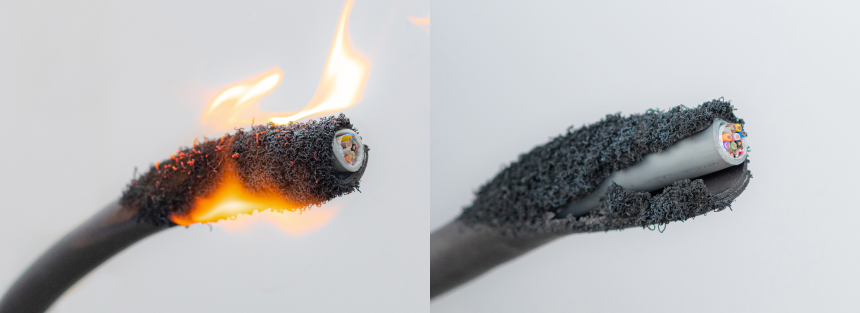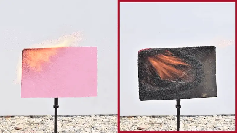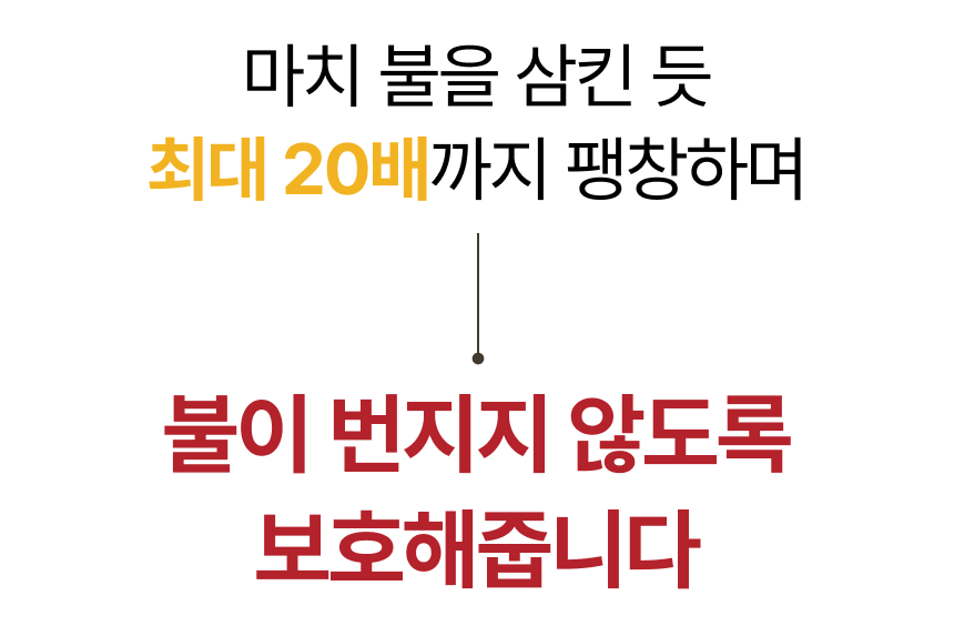 이 소재는 열이 닿으면 약 20배로 부풀어 오르면서 불길을 막아주는 방어막이 됩니다.
