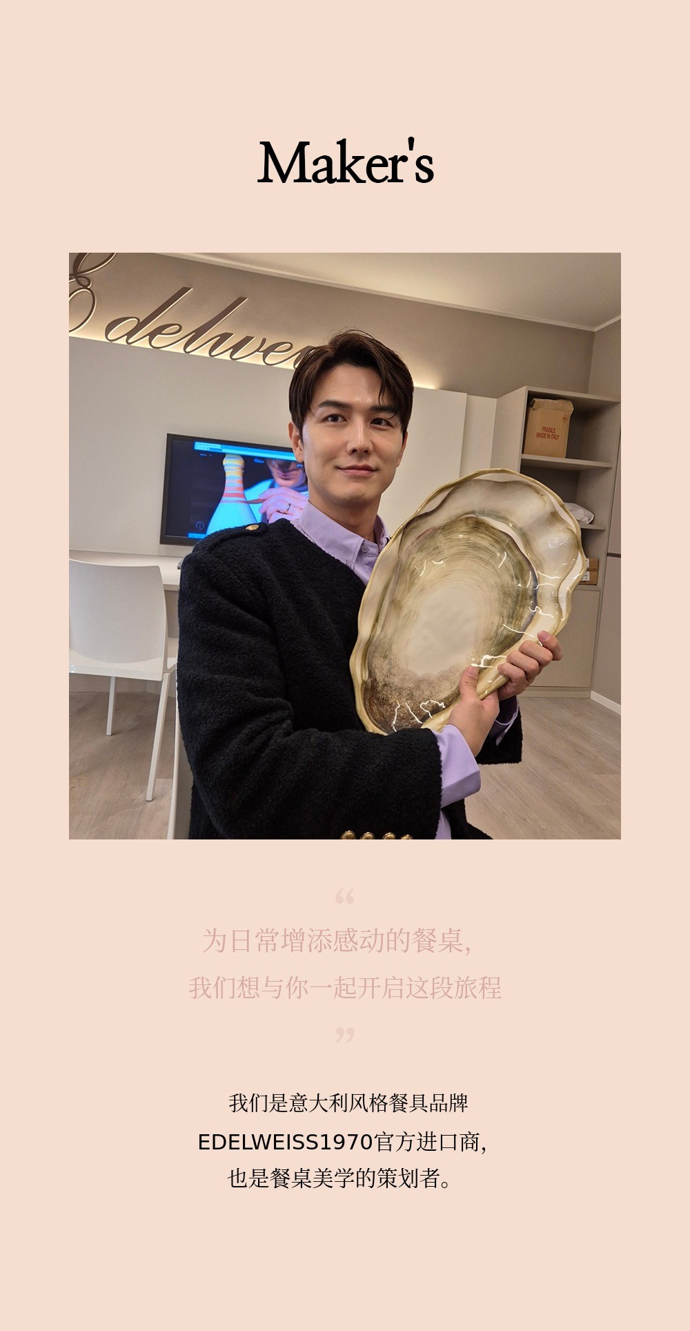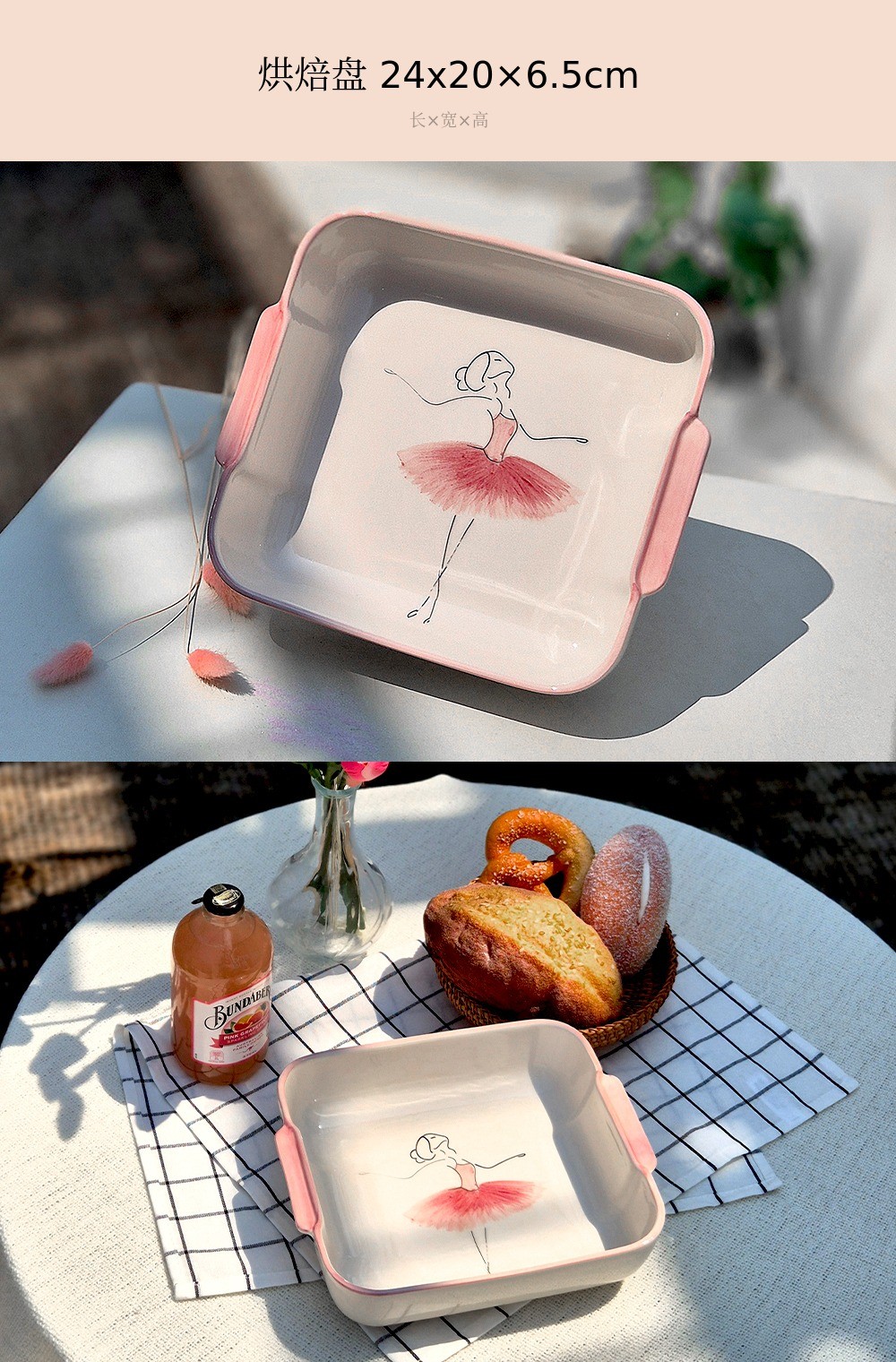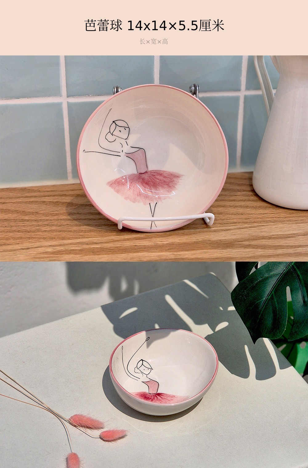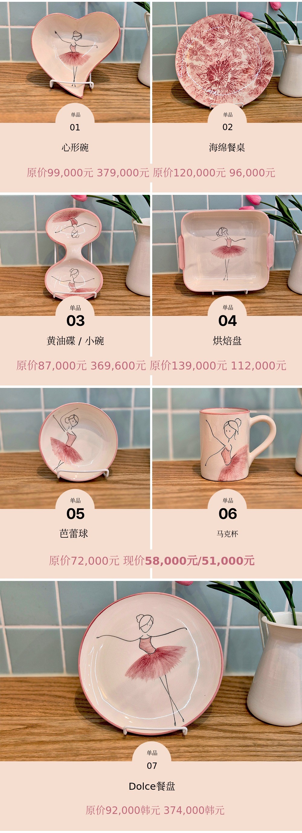 用柔和的笔触描绘的粉色蓬蓬裙让人联想到舞者细腻的动作,整体柔和的曲线与粉彩色调的和谐为餐桌增添温暖的感性。