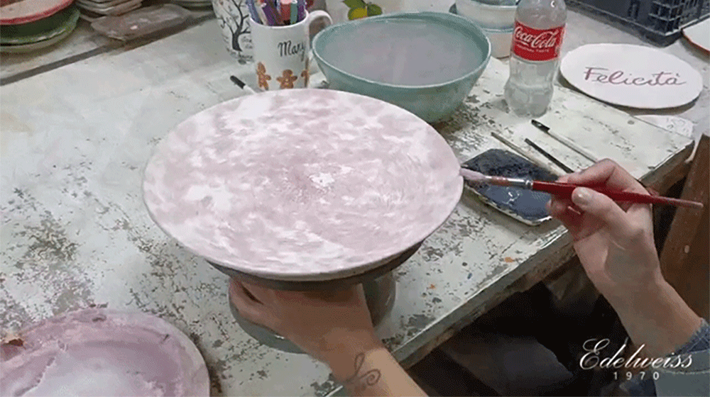 一笔一笔绘制在餐具上