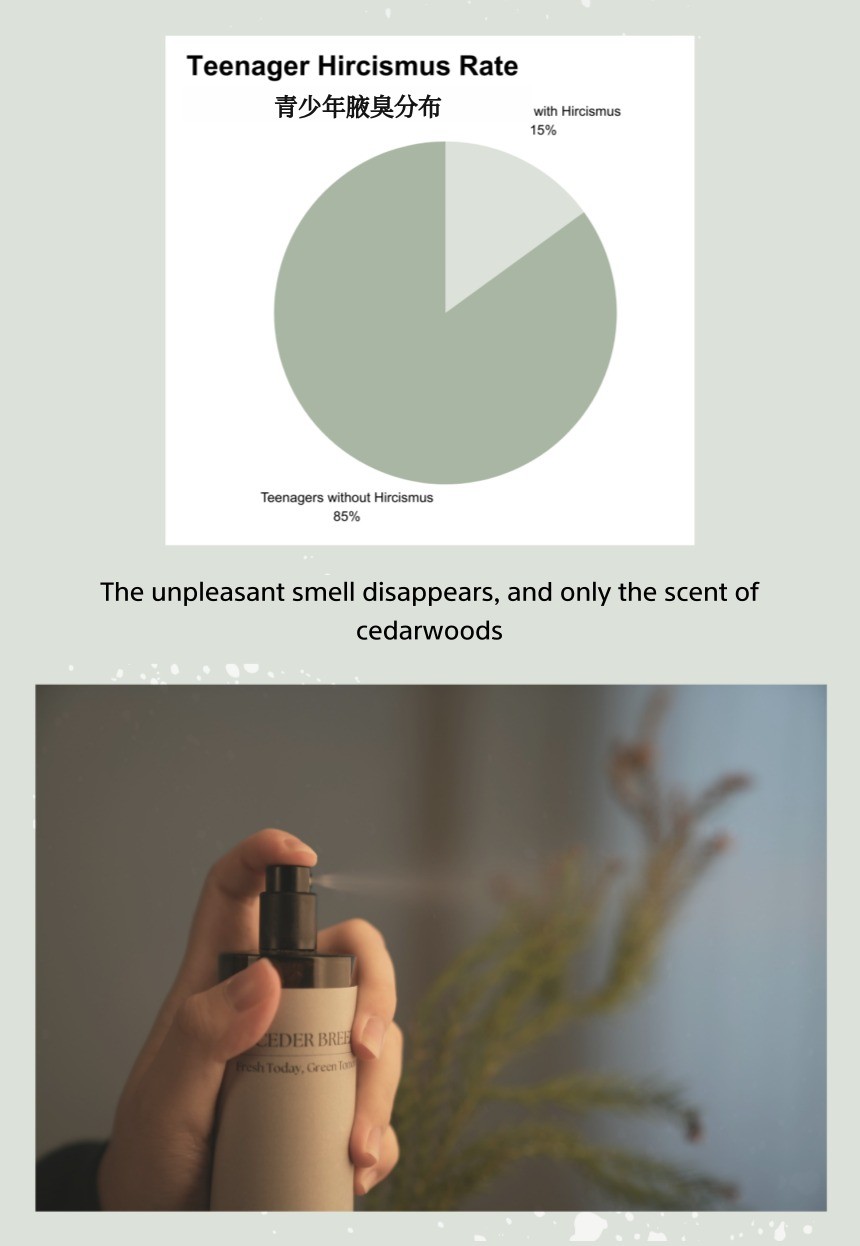 高中时我参加了足球队。和朋友们一起运动很开心,但因为我是守门员,所以感受到与众不同的责任感和压力。回想学生时代,和朋友们踢足球的时光是我最幸福的时刻。但运动时让我痛苦的是,身上挥之不去的汗味。我平时很爱干净,一天会洗两次澡,但运动时却无济于事。无论怎么洗澡,都无法彻底去除的汗味让我担心自己身上会有异味,也让我在运动后不愿意出现在公开场合。因此我尝试了许多除臭剂,结果发现这些除臭剂并不能解决汗味的根源细菌,只是用人工香味掩盖汗味,反而导致了皮肤问题。于是我决定自己研究,制作最适合青少年的除臭剂。希望像我这样需要大量运动的青少年们,不再为汗味烦恼,能够尽情运动。