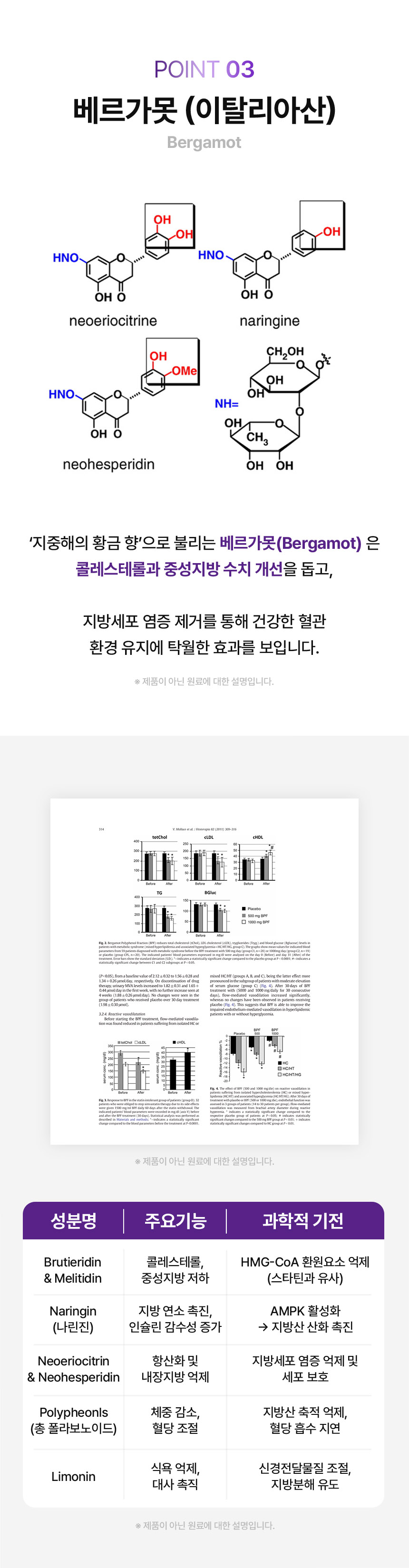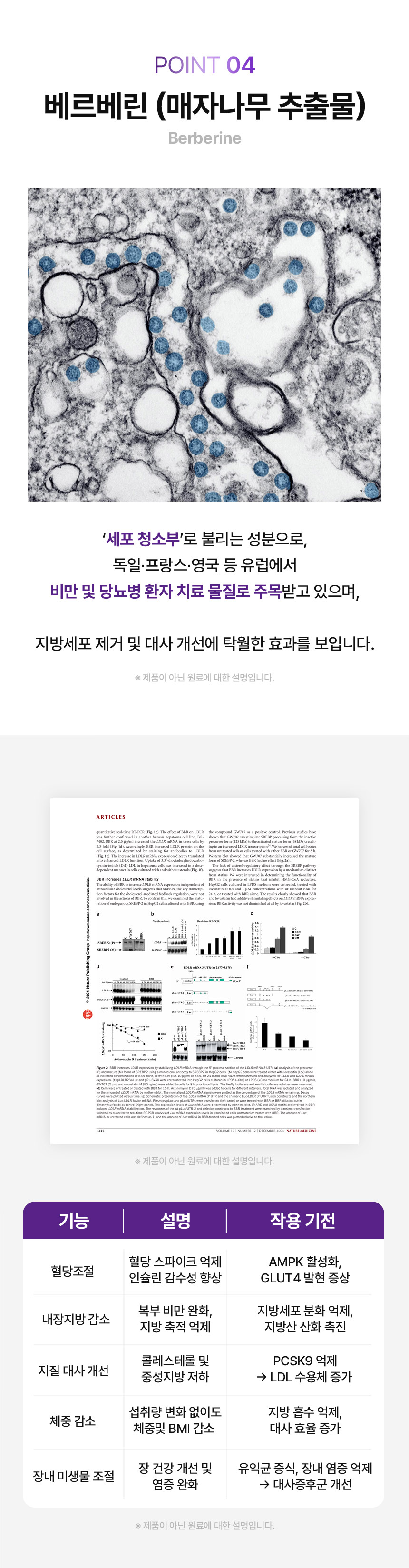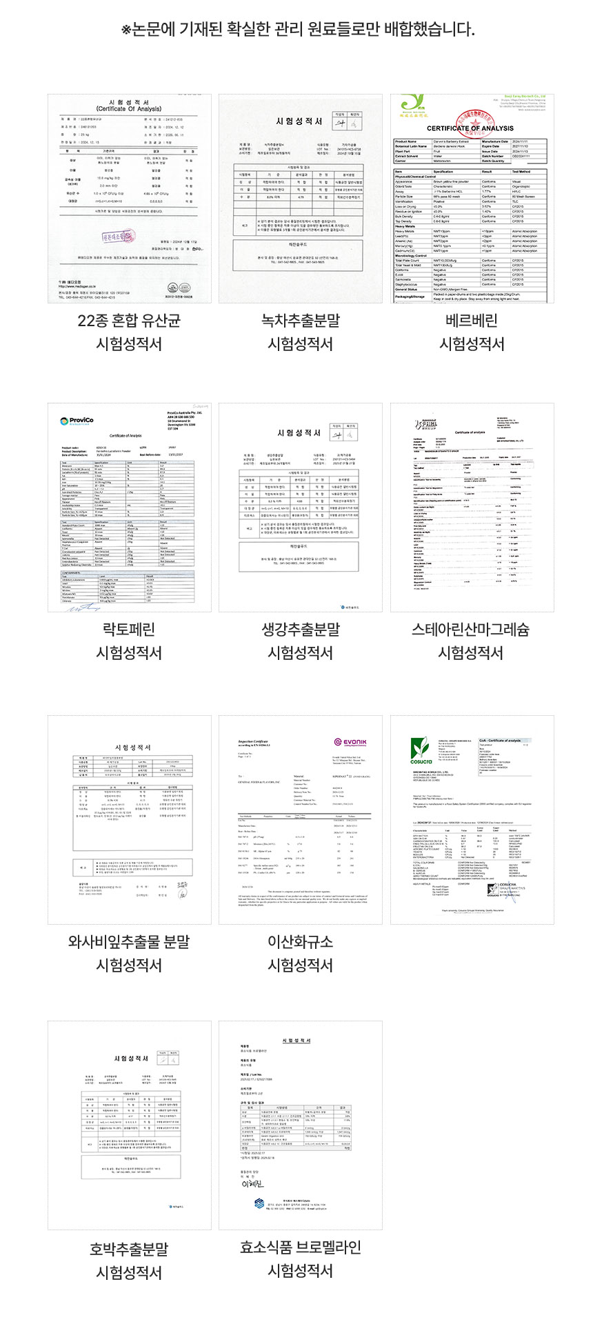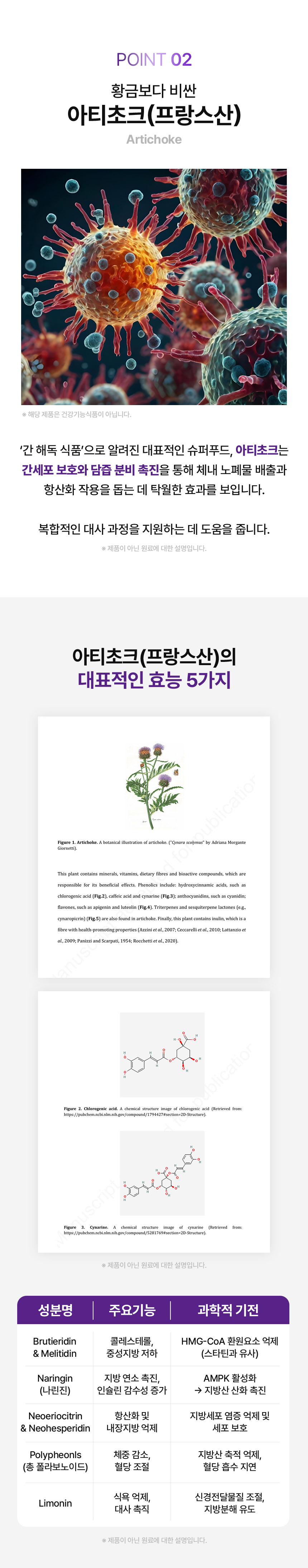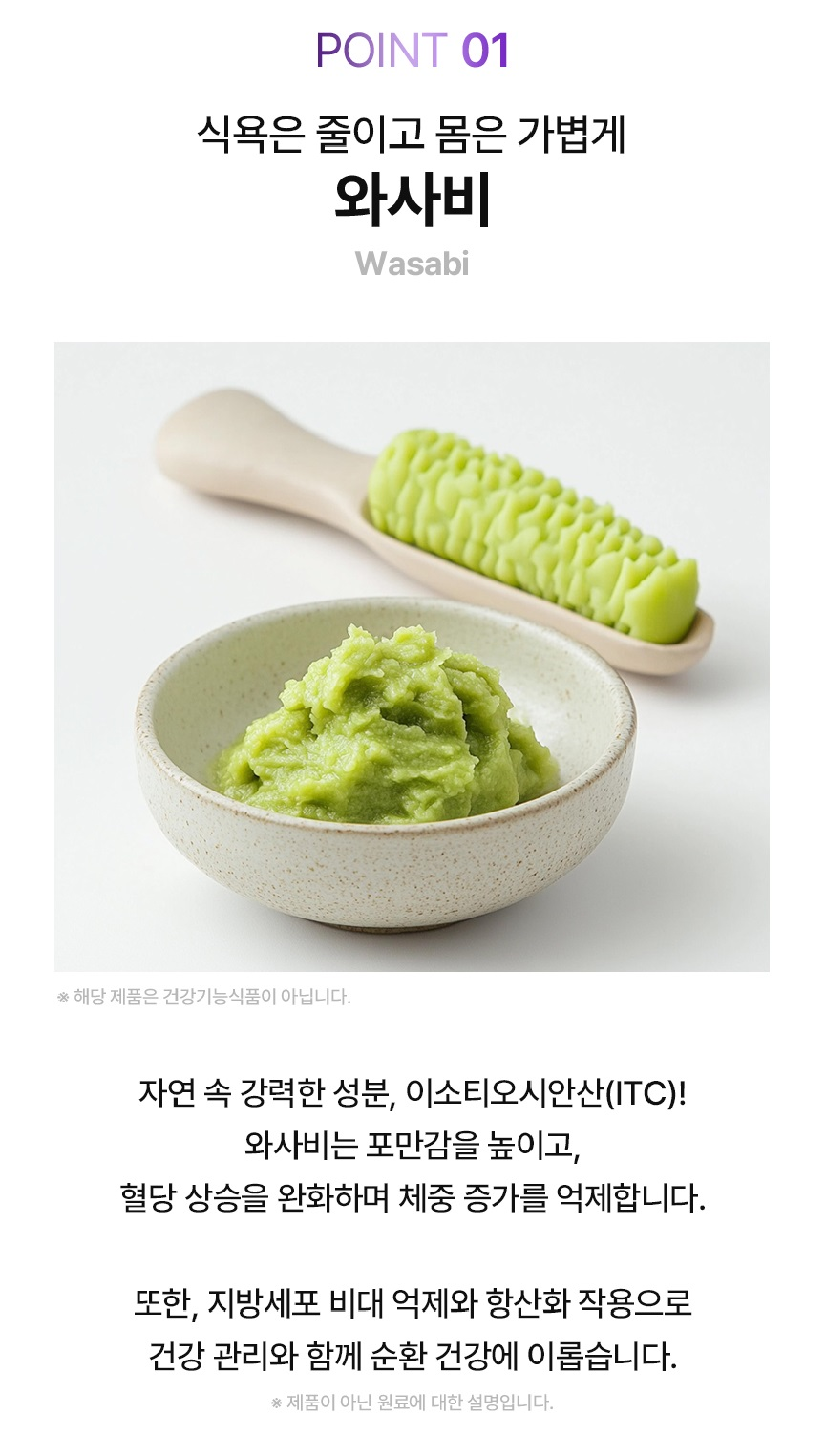 프랑스산 아티초크 추출물, 일본산 와사비 잎, 베르베린, 브로멜라인 등