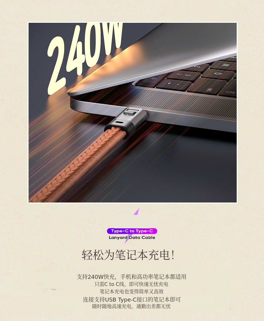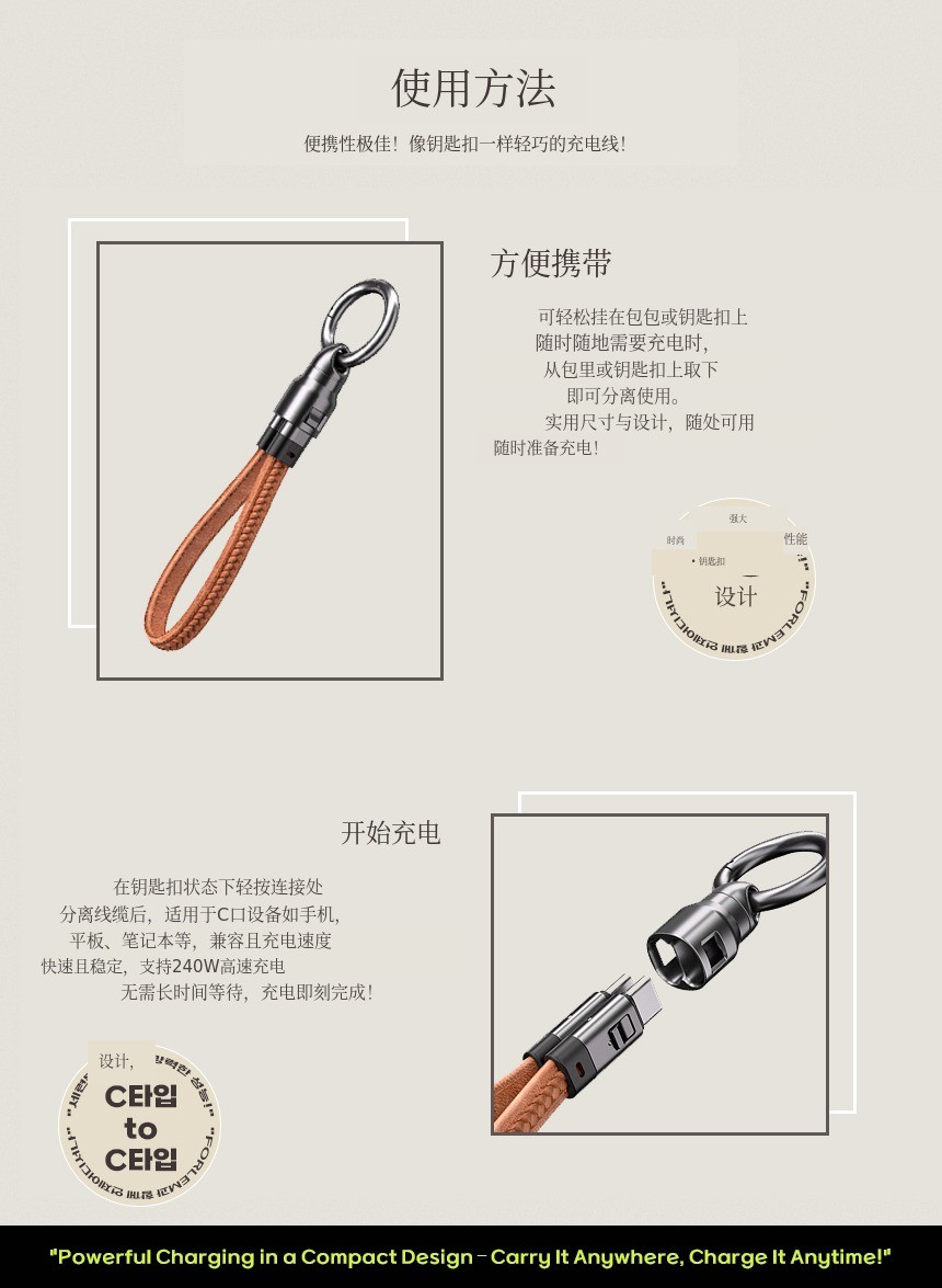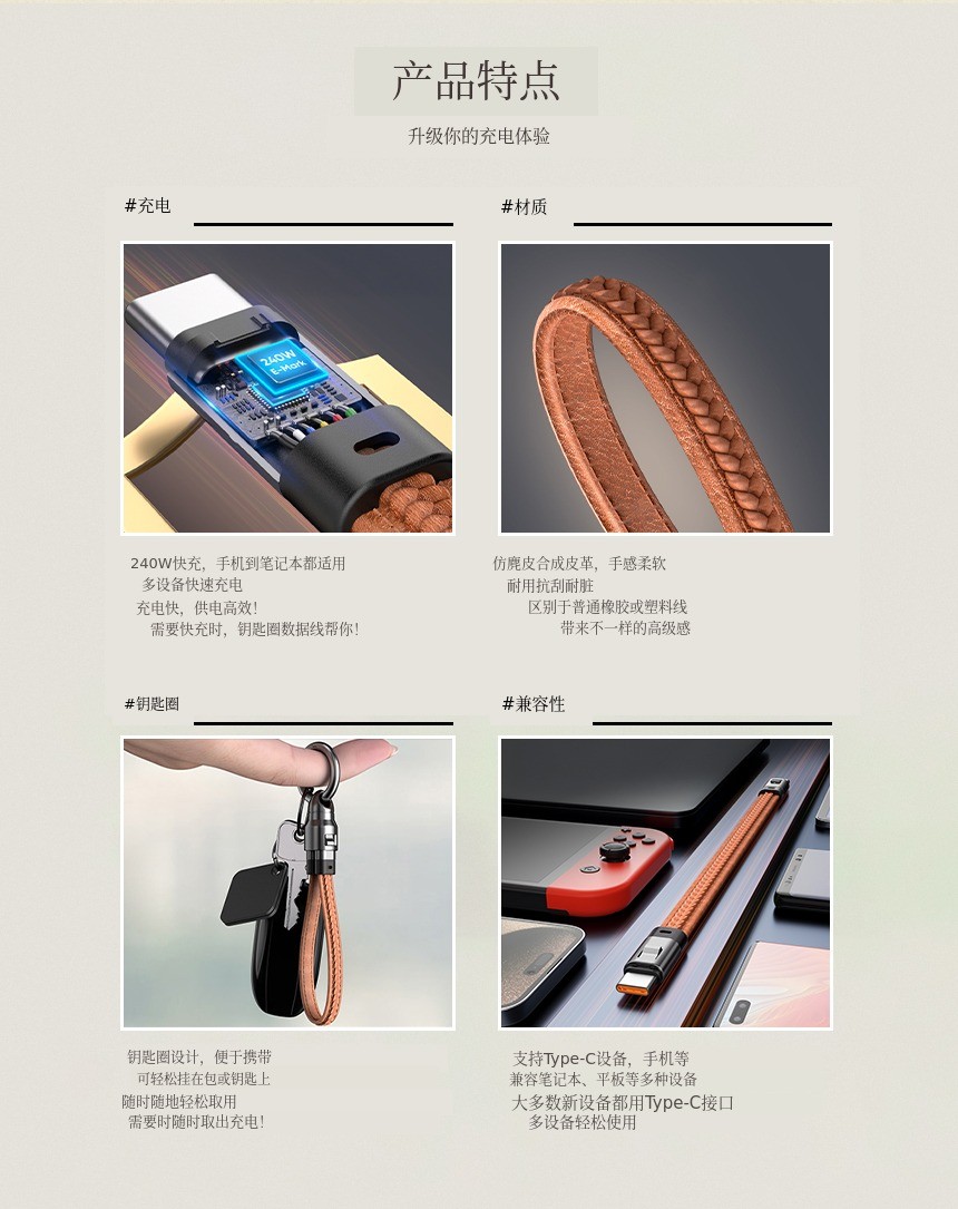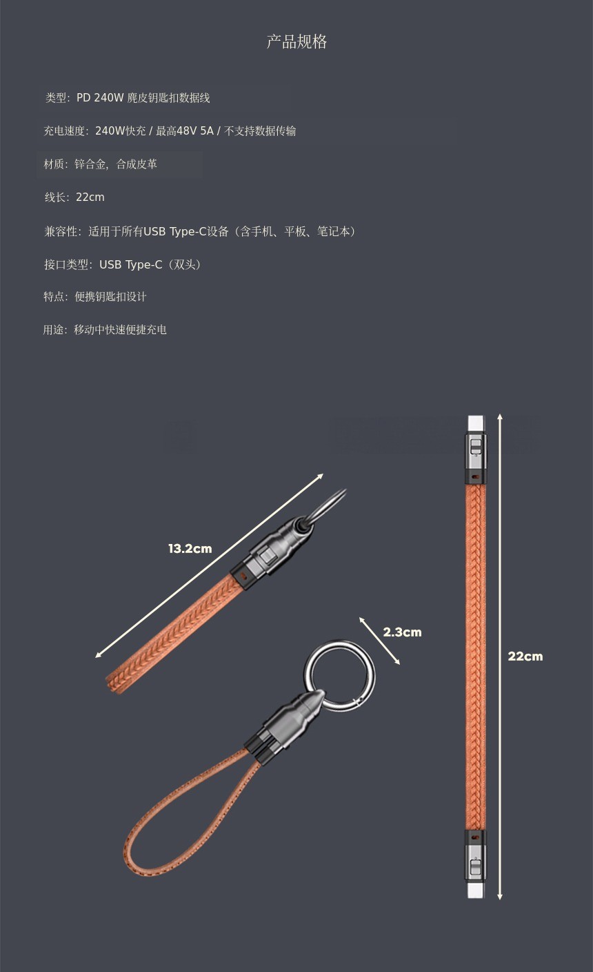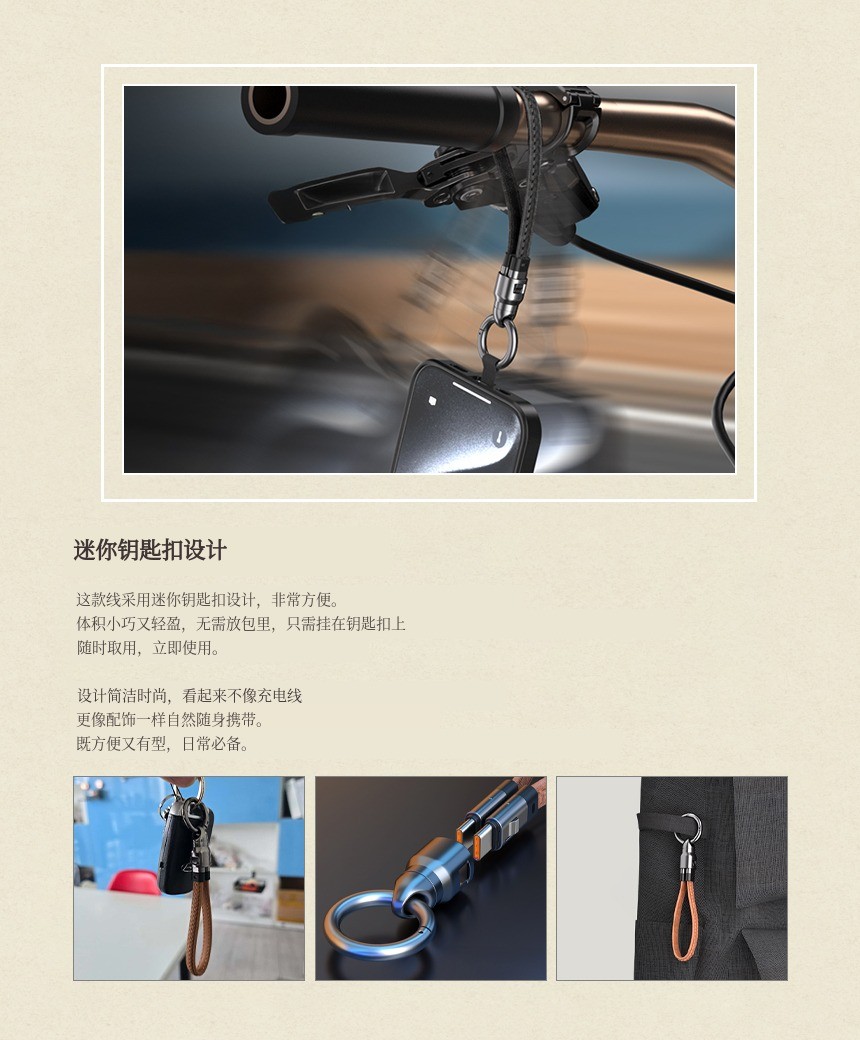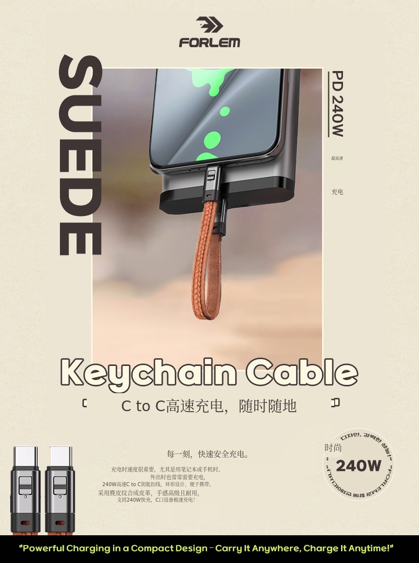 以往的充电线大多只注重功能性,但这款线缆同时兼具设计与功能。精致的麂皮超细纤维材质 与紧凑的钥匙扣设计,为您带来时尚的充电 体验。注重风格与实用性 的消费者,我们推出了这款产品,为您提供全新选择。