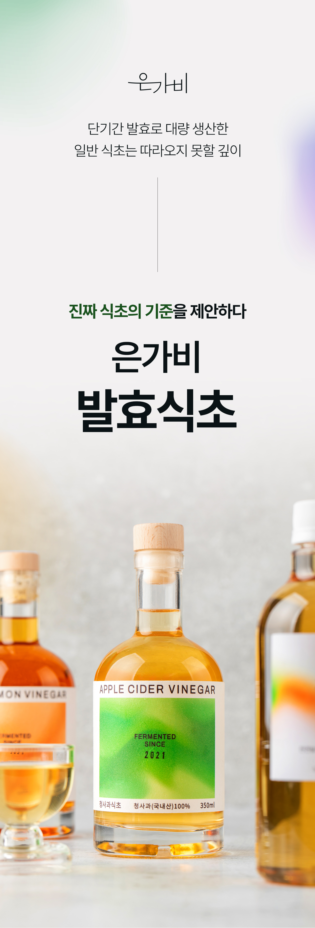 안녕하세요. 은가비 식초를 만드는 사람, 권지현입니다. 저는 대구 팔공산 자락에서 전통 한식과 발효음식을 연구하고, 직접 식당을 운영해오고 있습니다. 한식과 발효에 대해 '온고지신'이라는 말처럼 옛것을 익혀 새로운 것을 깨닫고 알아갑니다. 그 중에서도 '식초'는 특별했습니다. "시지 않고 부드러워서 놀랐다. ", "이거 따로 판매해 주시면 안될까요?" 손님들의 이런 진심 어린 피드백을 받고, 자연 발효의 가치와 건강한 맛을 더 많은 분들과 나누고 싶어졌습니다.