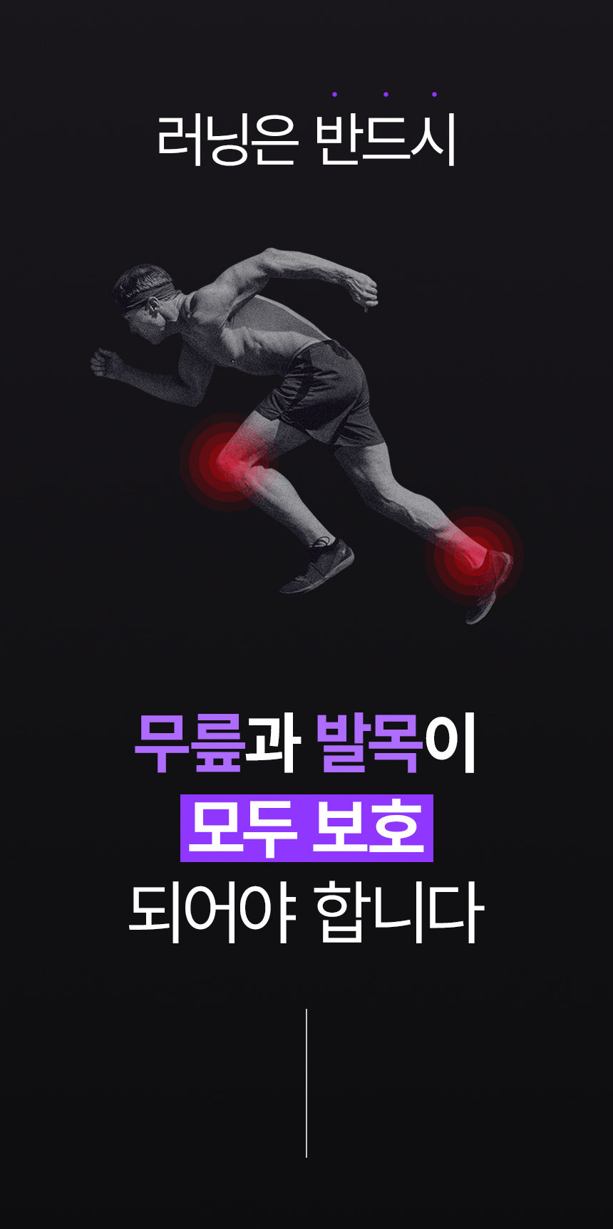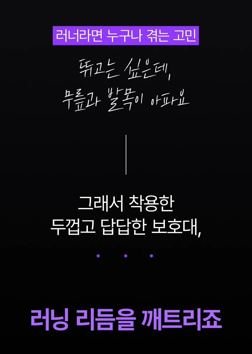 "뛰고는 싶은데, 무릎과 발목이 아파요". 수많은 러너의 고민을 들으며 저희는 기존 보호대의 한계를 절감했습니다. 단순히 압박하는 제품이 아니라, 러너의 움직임을 방해하지 않으면서도 '체감 안정감'을 줄 수 있는 보호대가 필요했습니다.