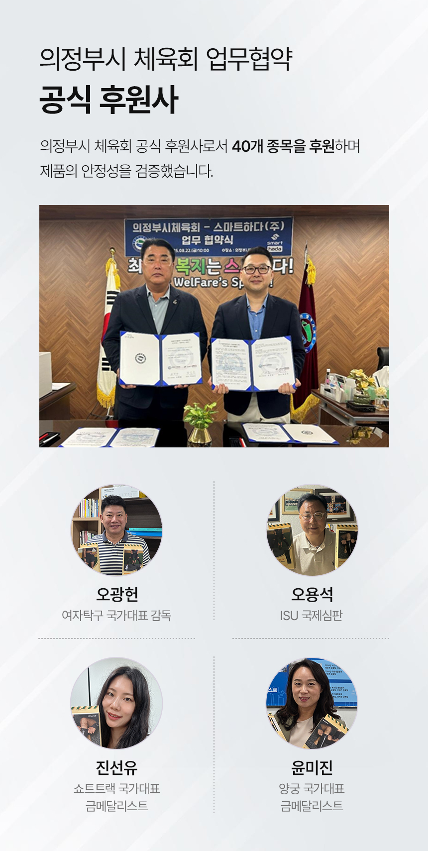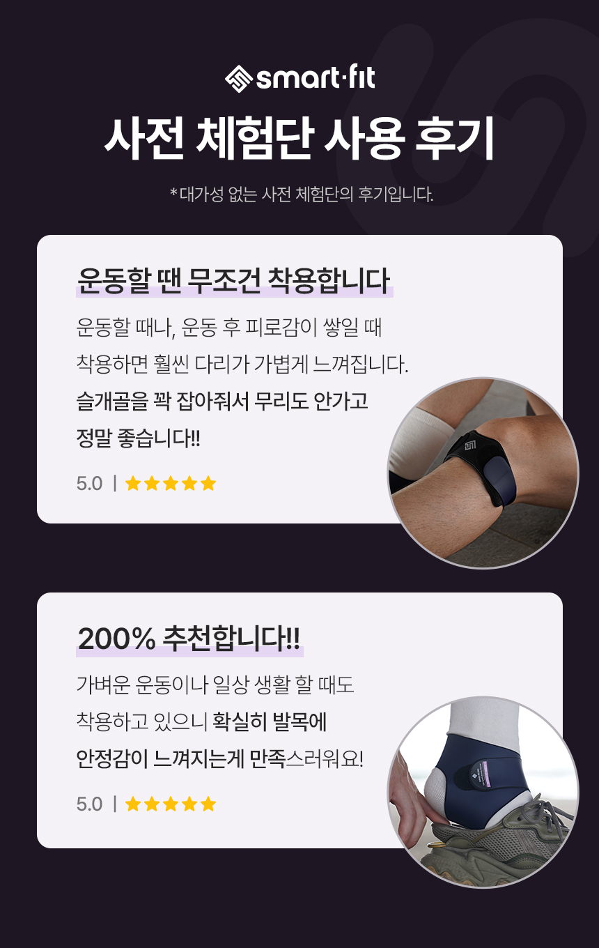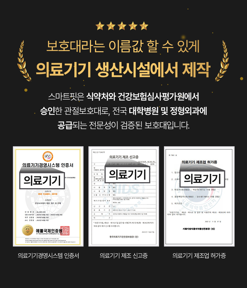 스마트핏은 의료기기 제조 전문 기업에서 직접 생산하며, 식약처와 건강보험심사평가원의 승인을 받았습니다. 또한, 서울이랜드FC 프로축구단과 의정부시 체육회 공식 후원을 통해 그 성능을 입증하고 있습니다.