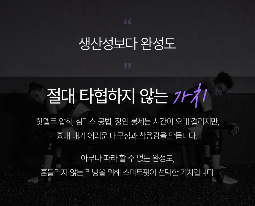 안녕하세요. 러너 여러분. 우리는 '자유와 회복, 스포츠의 행복을 끝까지 책임지는' 스포츠 퍼포먼스 브랜드, 스마트핏입니다. 이 모든 여정은 한 명의 러닝 코치로부터 시작되었습니다.