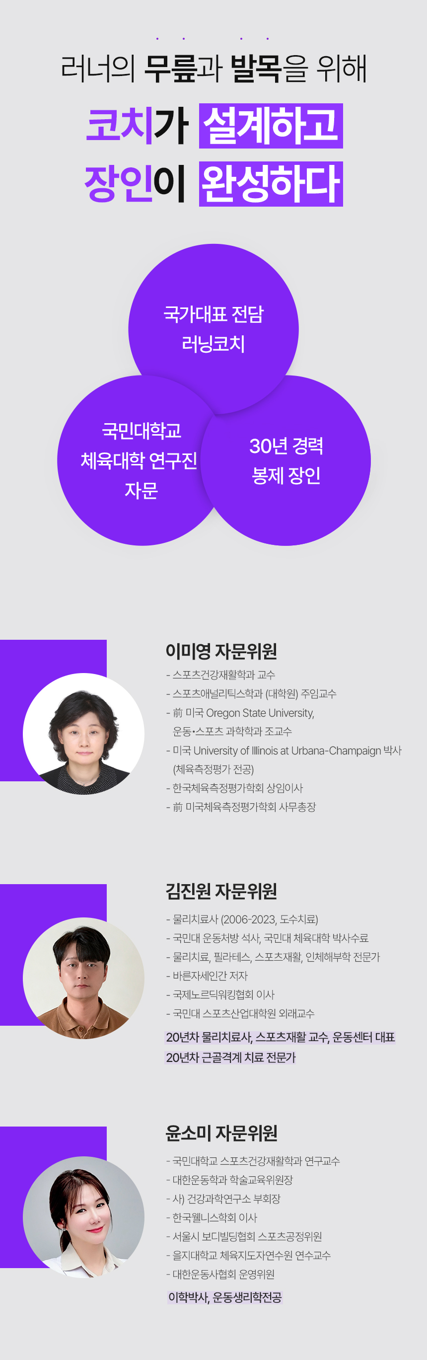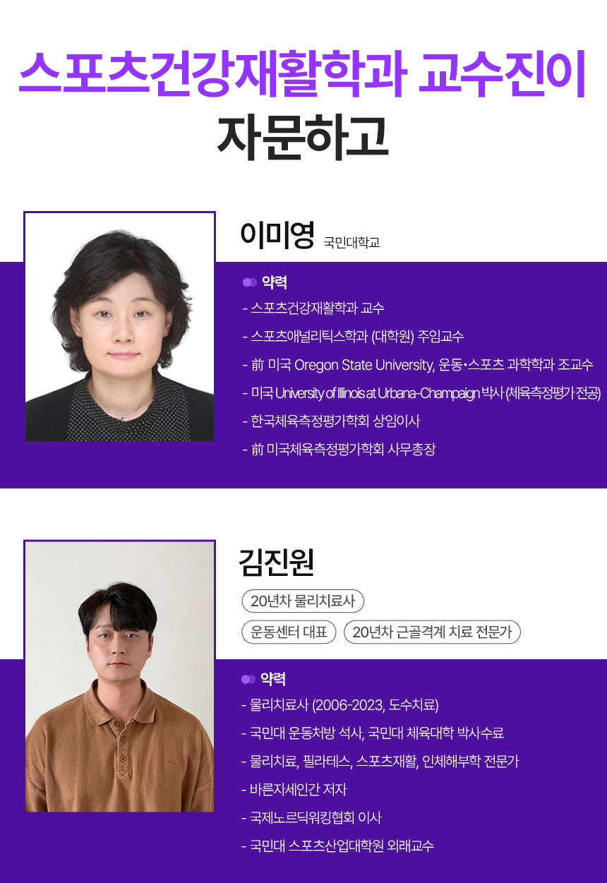 - 국민대학교 운동처방학부 교수 : 과학적인 자문과 테스트를 통해 제품의 기능을 검증했습니다.