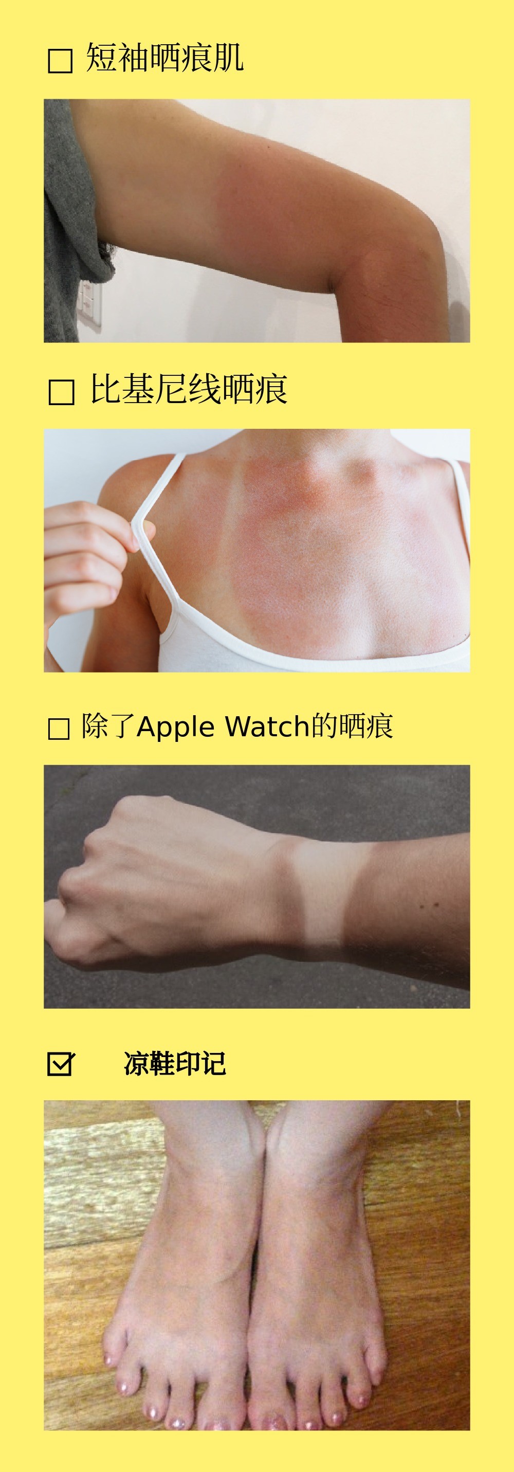 夏天在皮肤上留下的分界线