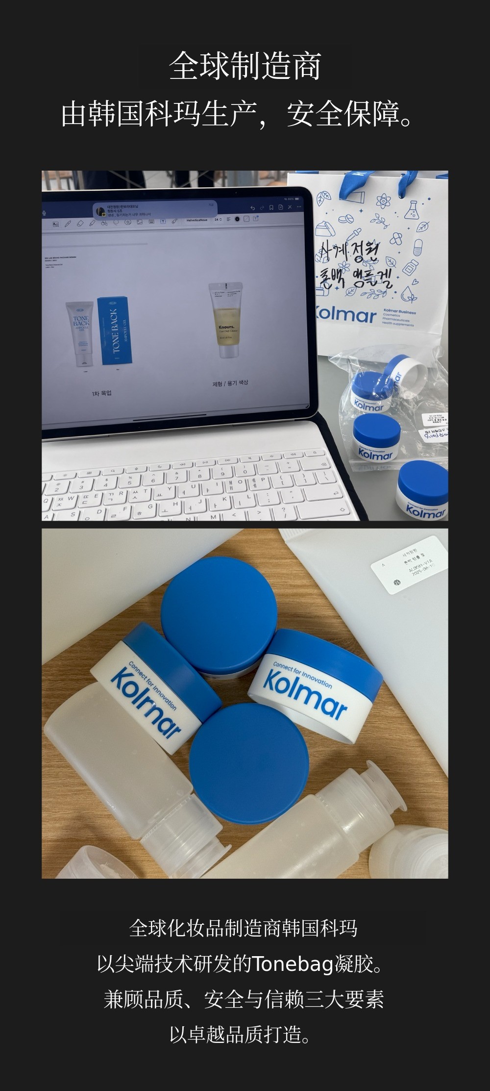 这次推出的“Toneback安瓶啫喱”入选了中小风险企业部主办的支援项目,与KAIST化学系出身的化妆品学教授一起,开发了专利成分并制作的第一款产品,。