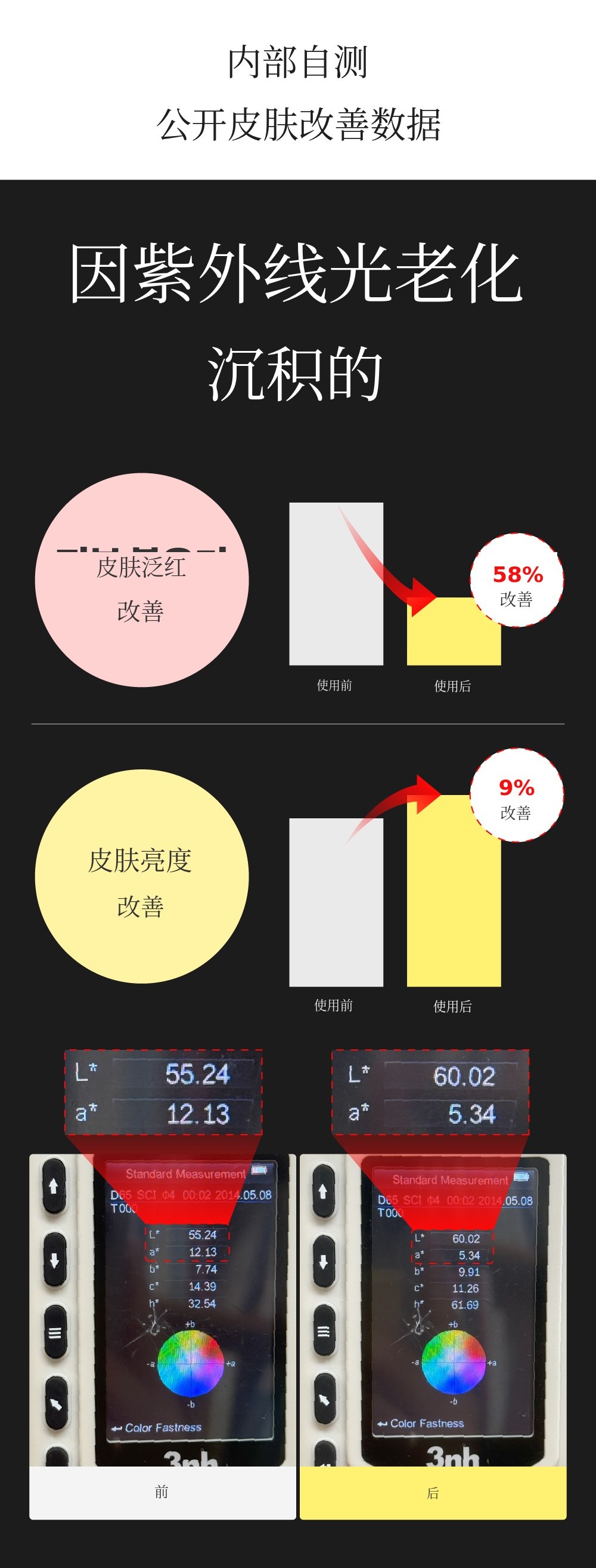 不仅能美白修复皮肤,还能修复因光老化受刺激的皮肤 를