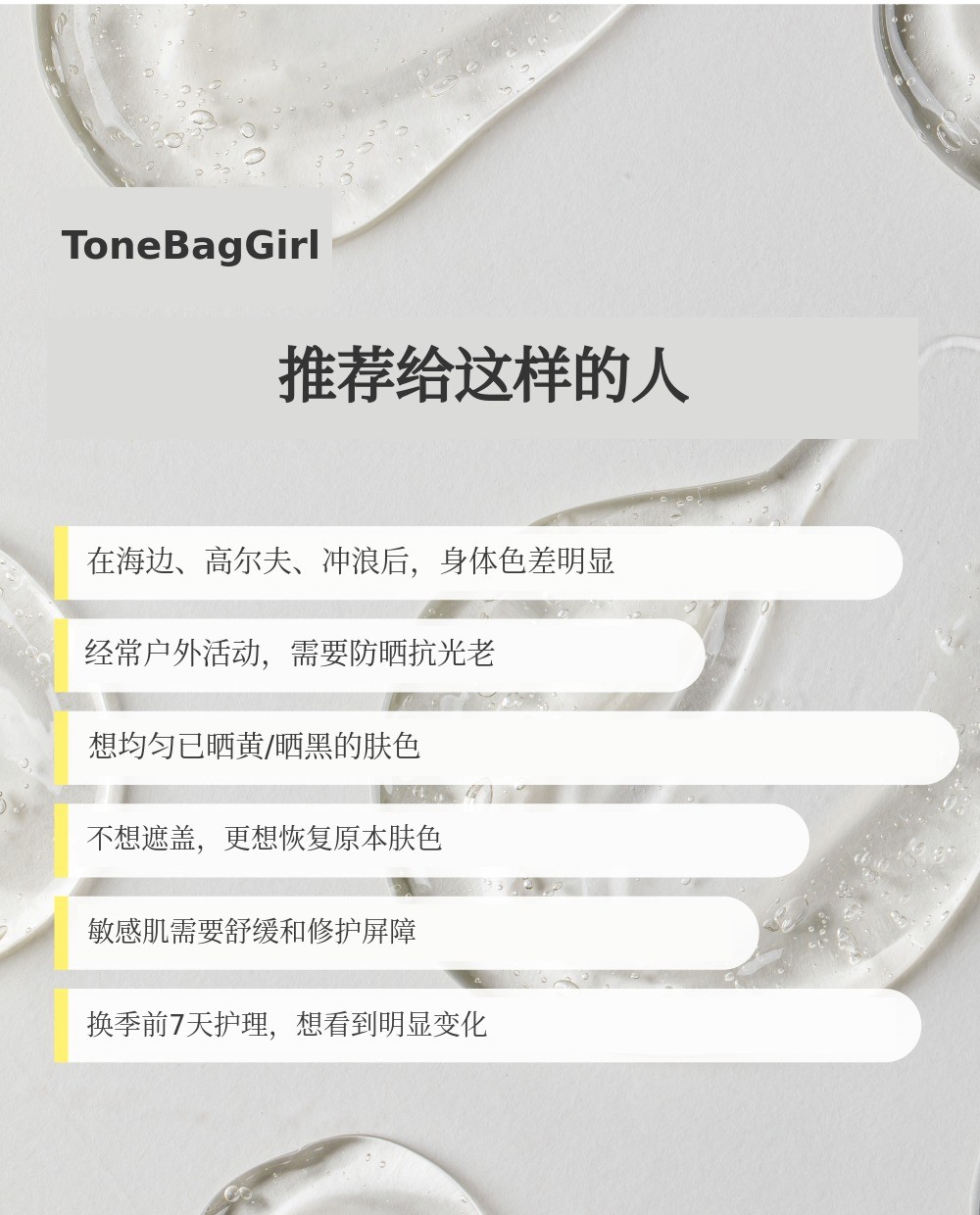 用Toneback啫喱轻松抹去夏天的痕迹。