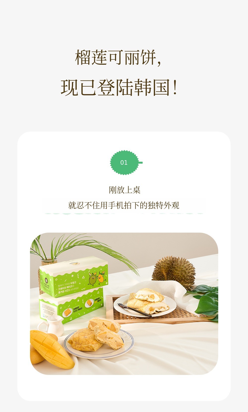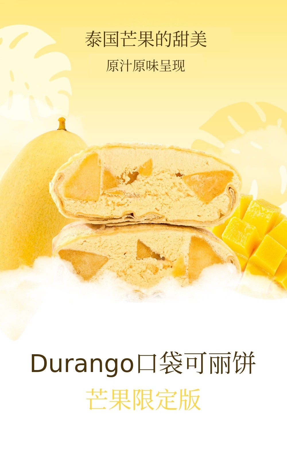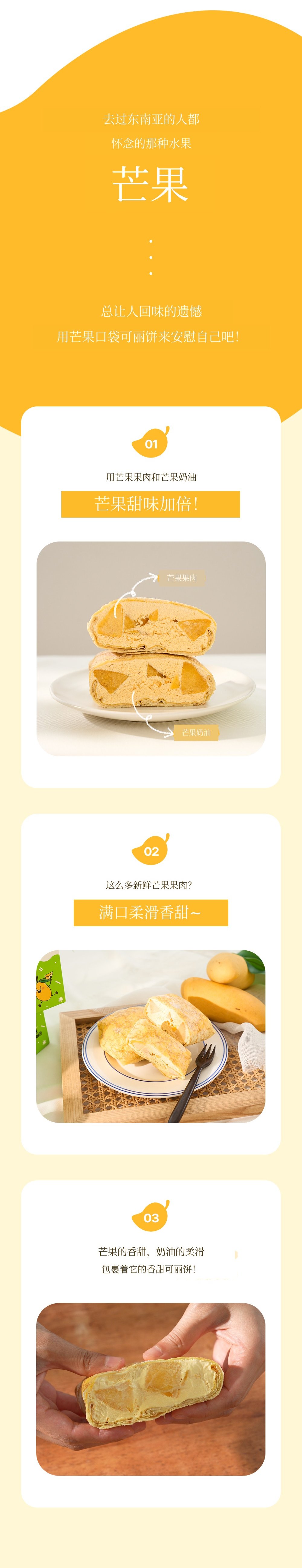 1. 🍰 榴莲芒果口袋可丽饼 - 采用真热带水果,口感新鲜柔软的甜点 2. 🌴 东南亚旅行体验 - 甜美热带水果味道,重现异国风情甜点 3. 🎁 优惠套装福利 - 含冰袋和红豆面包,价格优惠
