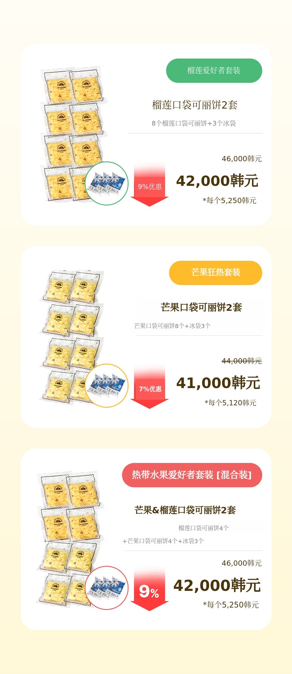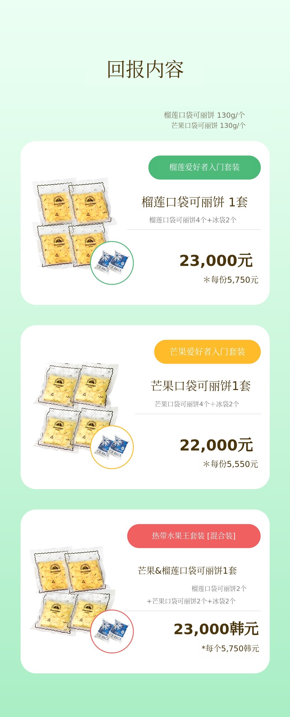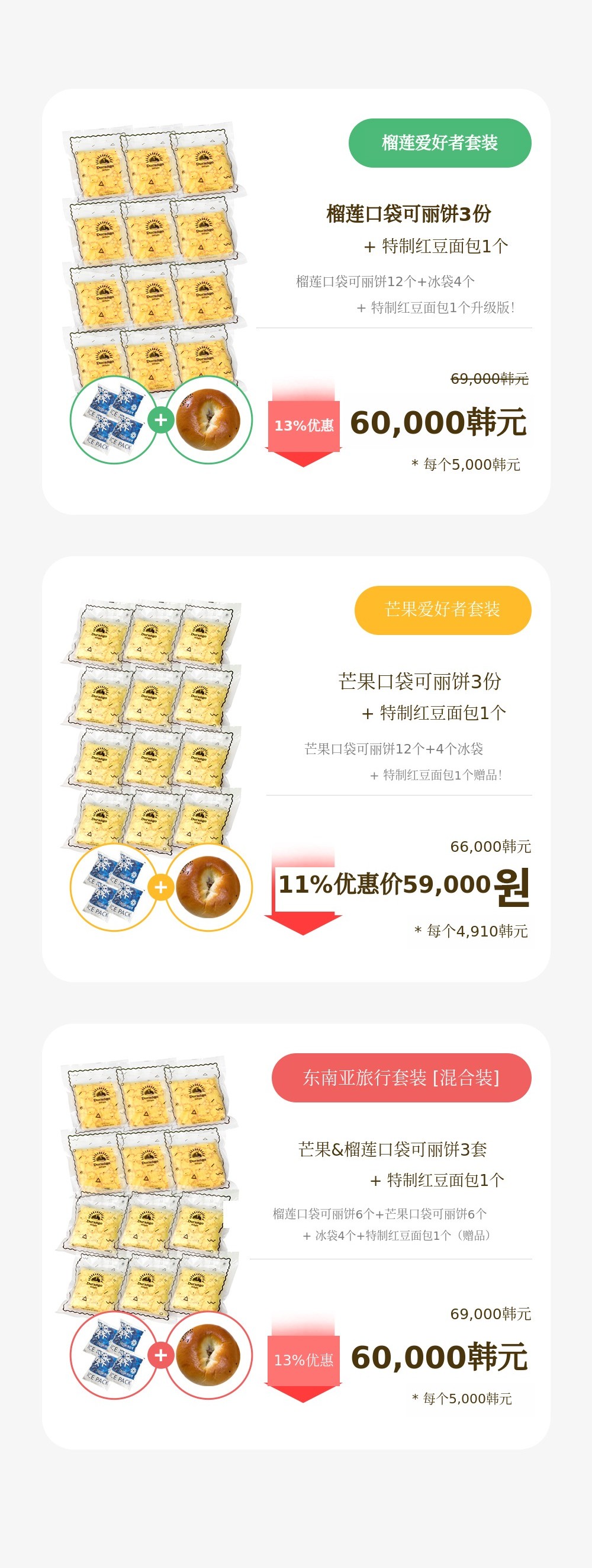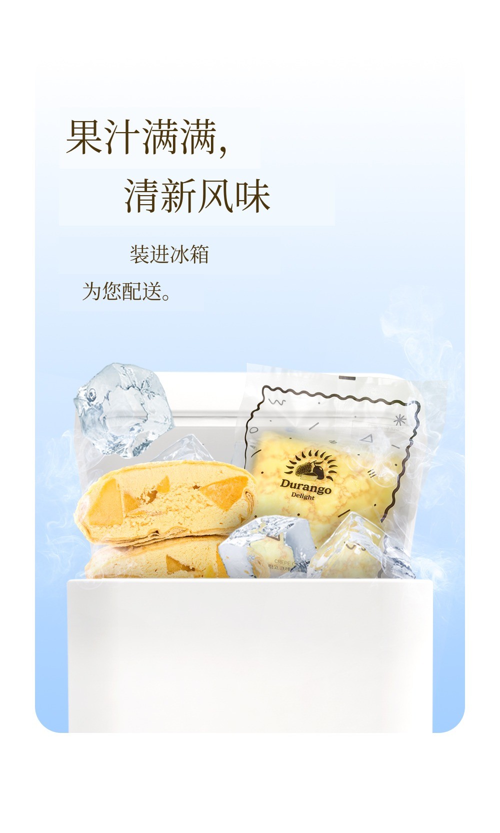 1. 🍰 榴莲芒果口袋可丽饼 - 采用真热带水果,口感新鲜柔软的甜点 2. 🌴 东南亚旅行体验 - 甜美热带水果味道,重现异国风情甜点 3. 🎁 优惠套装福利 - 含冰袋和红豆面包,价格优惠