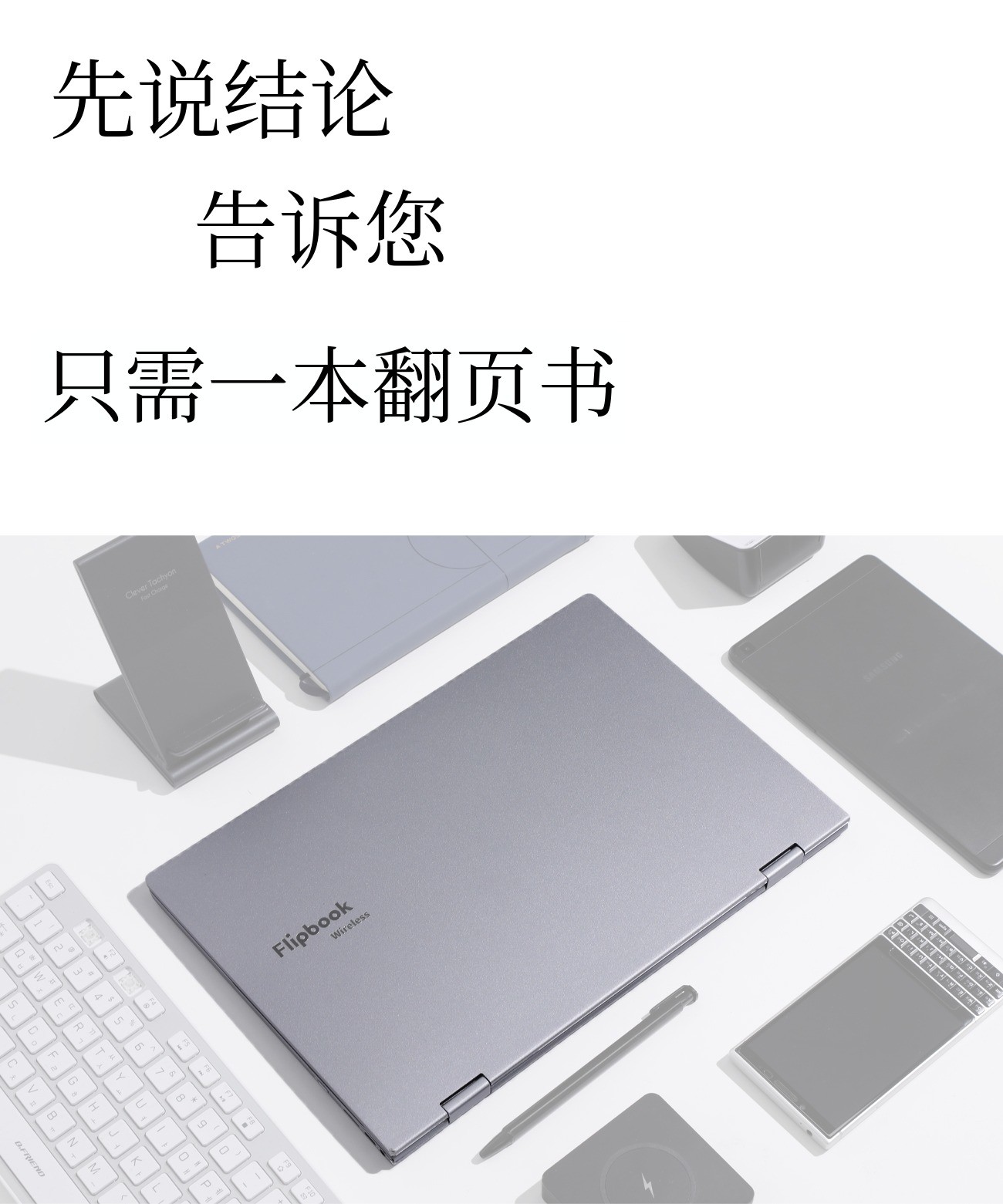 如果不能使用自己习惯的键盘和鼠标,就不能称为真正的智能生活解放。 无线Flipbook自带键盘,但可以随时无线连接你习惯的PC外设使用。