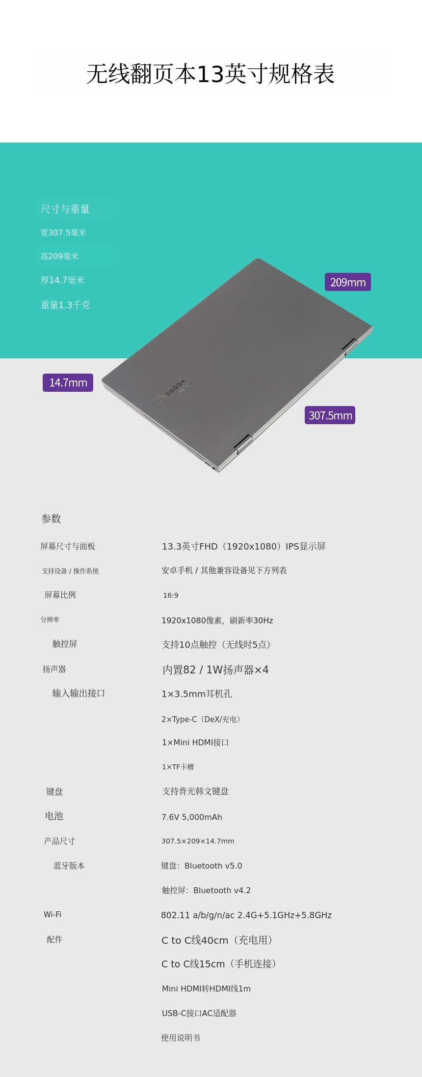 Flipbook无线13英寸主机1台(银色)