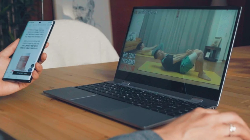 三星DeX与无线翻页本的组合将成为最佳答案。只需打开翻页本电源并无线连接智能手机,就能直接显示在NAVER应用或Chrome应用中看到的画面。