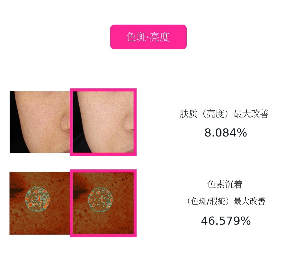 并且还能调节皮肤的敏感度,防止皮肤对紫外线过度反应。通过阻断色斑生成的起点,防止色斑被去除的部位再次生成色斑。