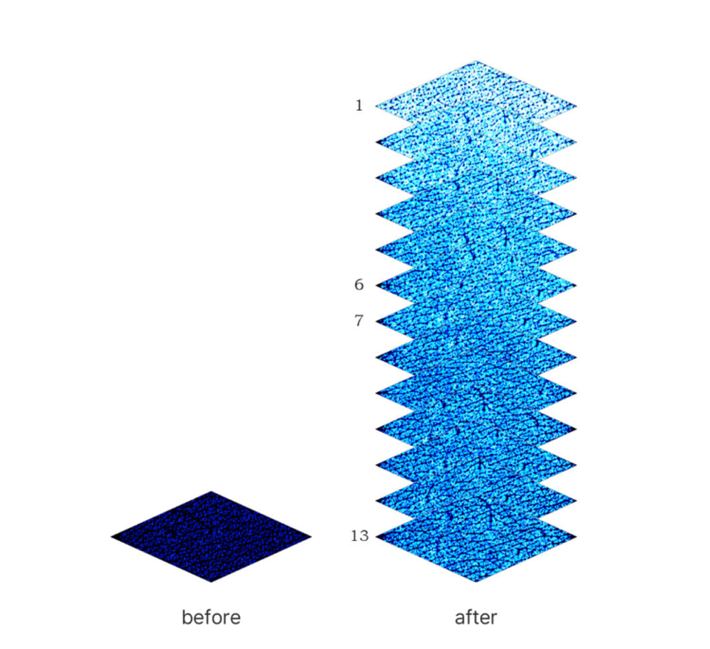 我们假设将皮肤分为13层。这时,左边较暗的照片是涂抹珍珠霜前的皮肤表面照片。可以说是未涂抹任何产品的第一层皮肤照片。右边较亮的照片是涂抹珍珠霜后第13层的照片。可以看到,皮肤最底层的第13层水分含量大幅增加。