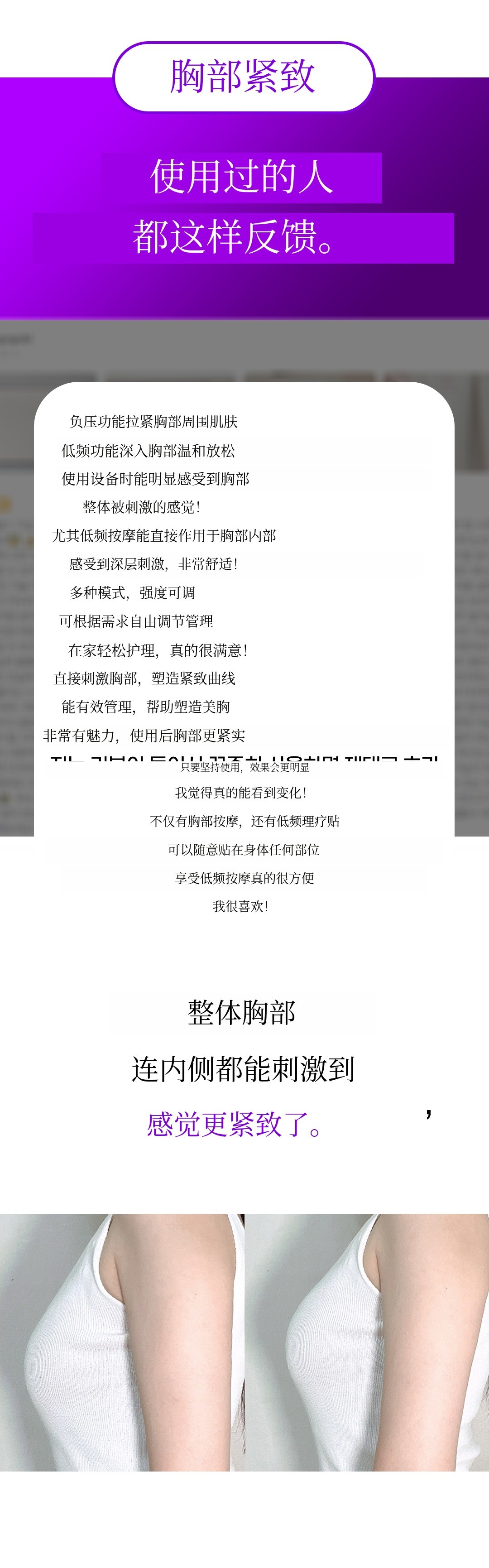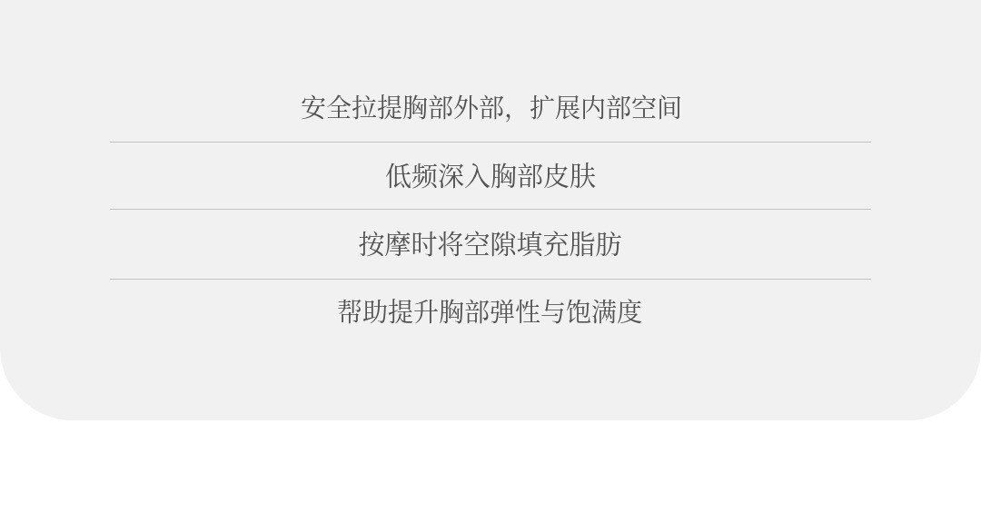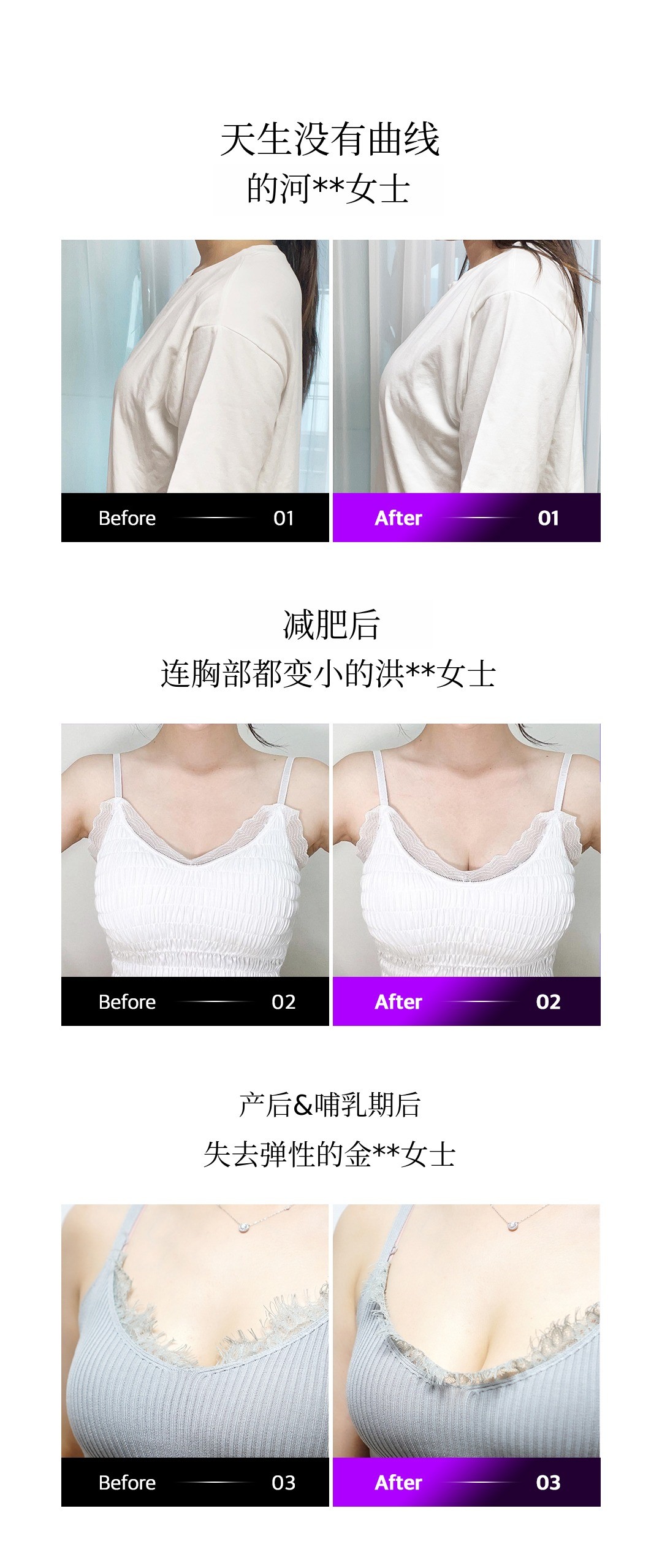 答:减肥后下垂的胸部、哺乳后下垂的胸部,产后或因衰老导致弹性下降的胸部等,可根据胸部状态和身体状况选择多种模式使用。