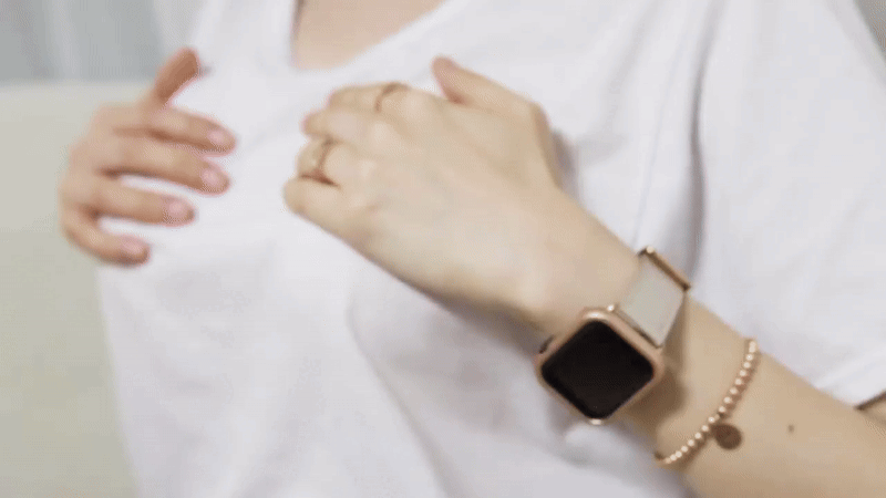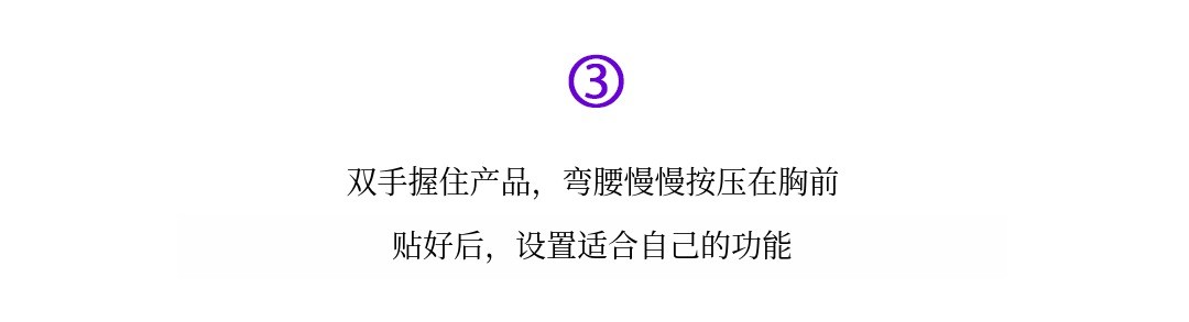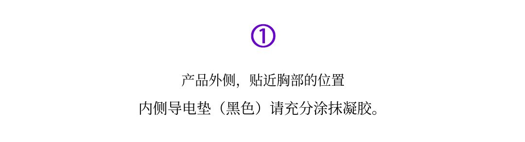 A. 有时胸围很小或几乎没有脂肪的人佩戴会有困难。这种情况下请不要在产品边缘涂抹凝胶,只需在内侧黑色导电垫部分轻轻涂抹,然后舒适地躺下,变换产品位置佩戴,这样更容易找到合适的位置,一旦佩戴成功后位置固定,下次就可以顺利佩戴。