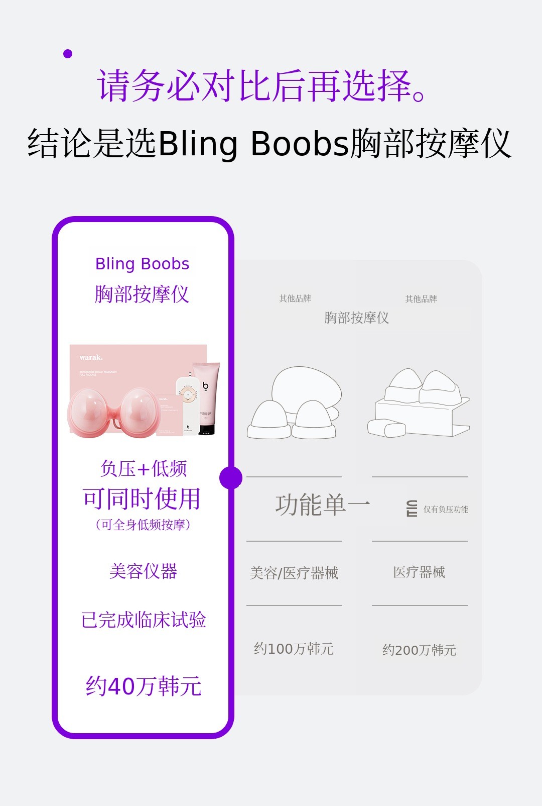 BlingBoobs自2015年开始产品开发,并自2018年起通过线上渠道销售第一代胸部按摩器。许多人对产品表现出兴趣,也正是大家逐渐了解胸部按摩器必要性的时期。