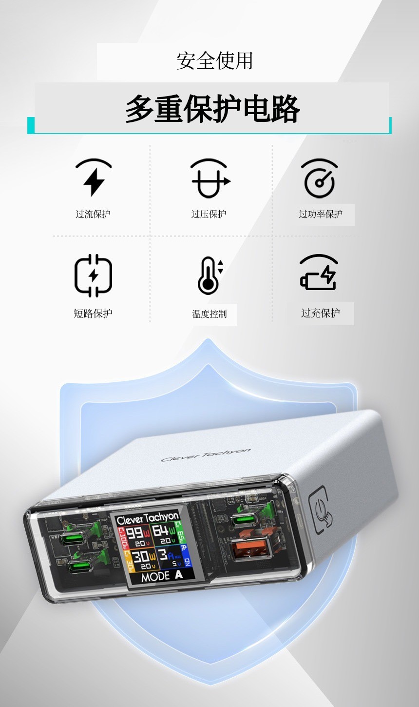 充电器的基本是安全。Clever充电器配备了多种保护功能,设备的安全 由我们负责。