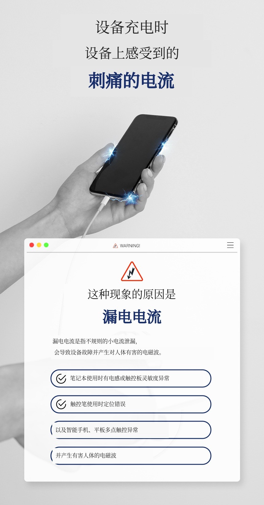 在稳定的环境下,尽情使用笔记本、平板等多种设备。采用三针接地设计,释放漏电电流,抑制残留电流、触摸误操作及电磁波 可以做到。
