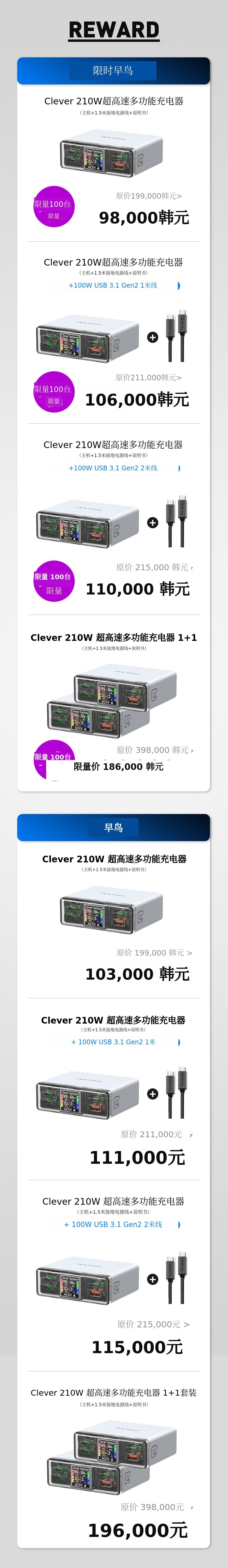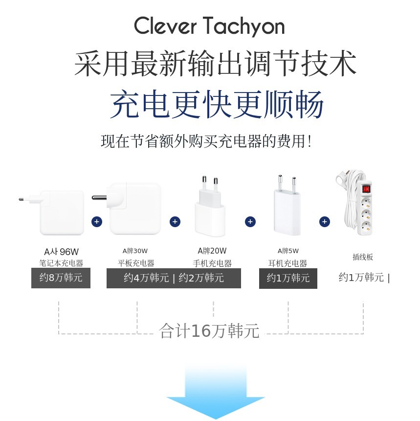 而且每台设备所需的充电功率不同,有的需要高功率充电,有的需要低功率充电,所以还要单独购买充电器 了吧。Clever Tachyon CR210是一款可调节输出的最新技术,未来可以减少因额外购买充电器而产生的双重支出。