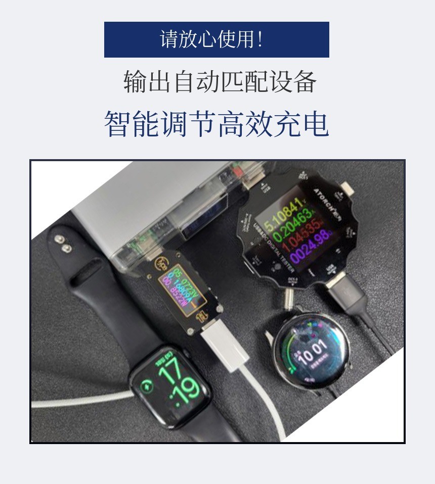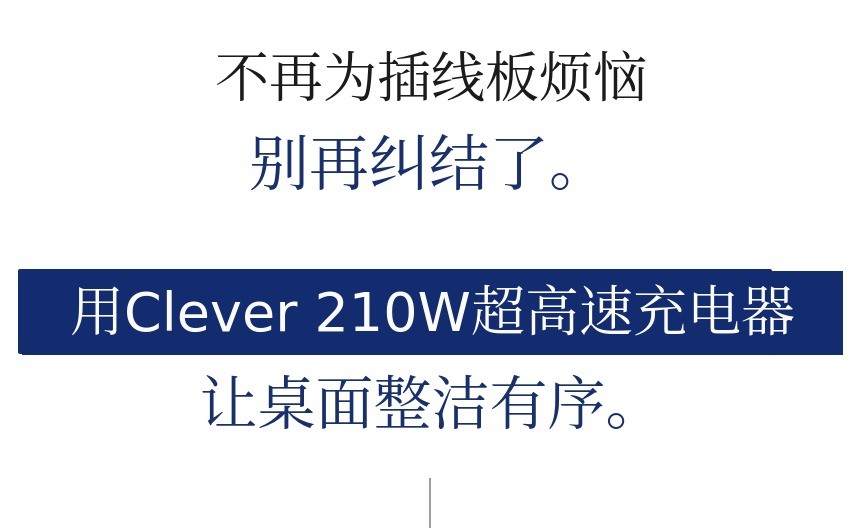 Clever采用最新AI智能输出设计,能够无重启地舒适充电,即使在切换输出模式时也能持续不断地充电。这不仅仅是一个充电速度快的充电器。所有端口除了高功率设备外,像手表、耳机等多种低功率设备也能无障碍实现最佳充电的兼容设计,请放心使用。