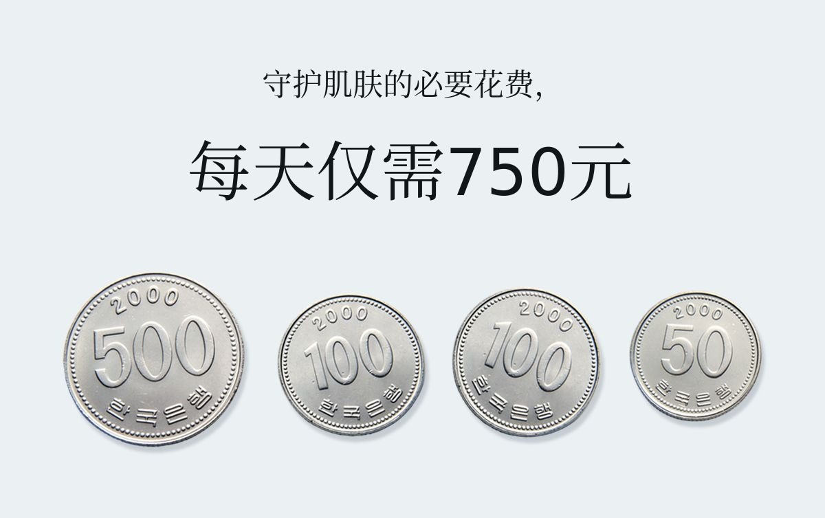 假如一天使用5克,只需750韩元就能保护皮肤 了。