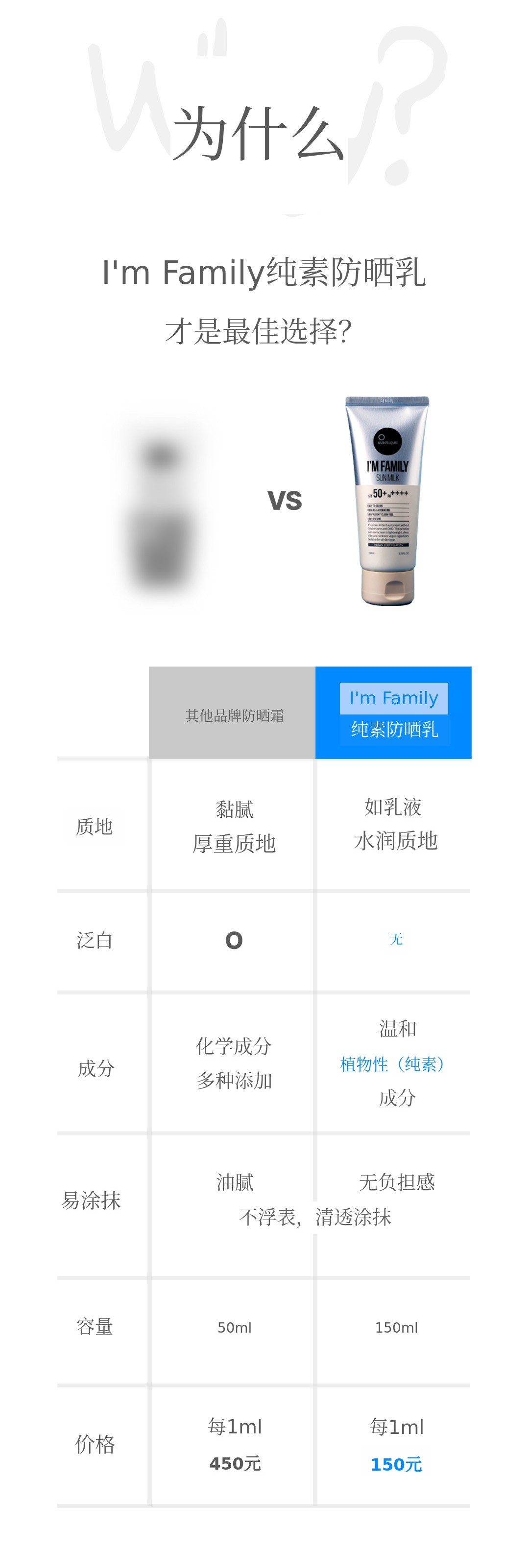 150ml大容量的I'm Family防晒乳价格便宜三倍以上 就是这样。