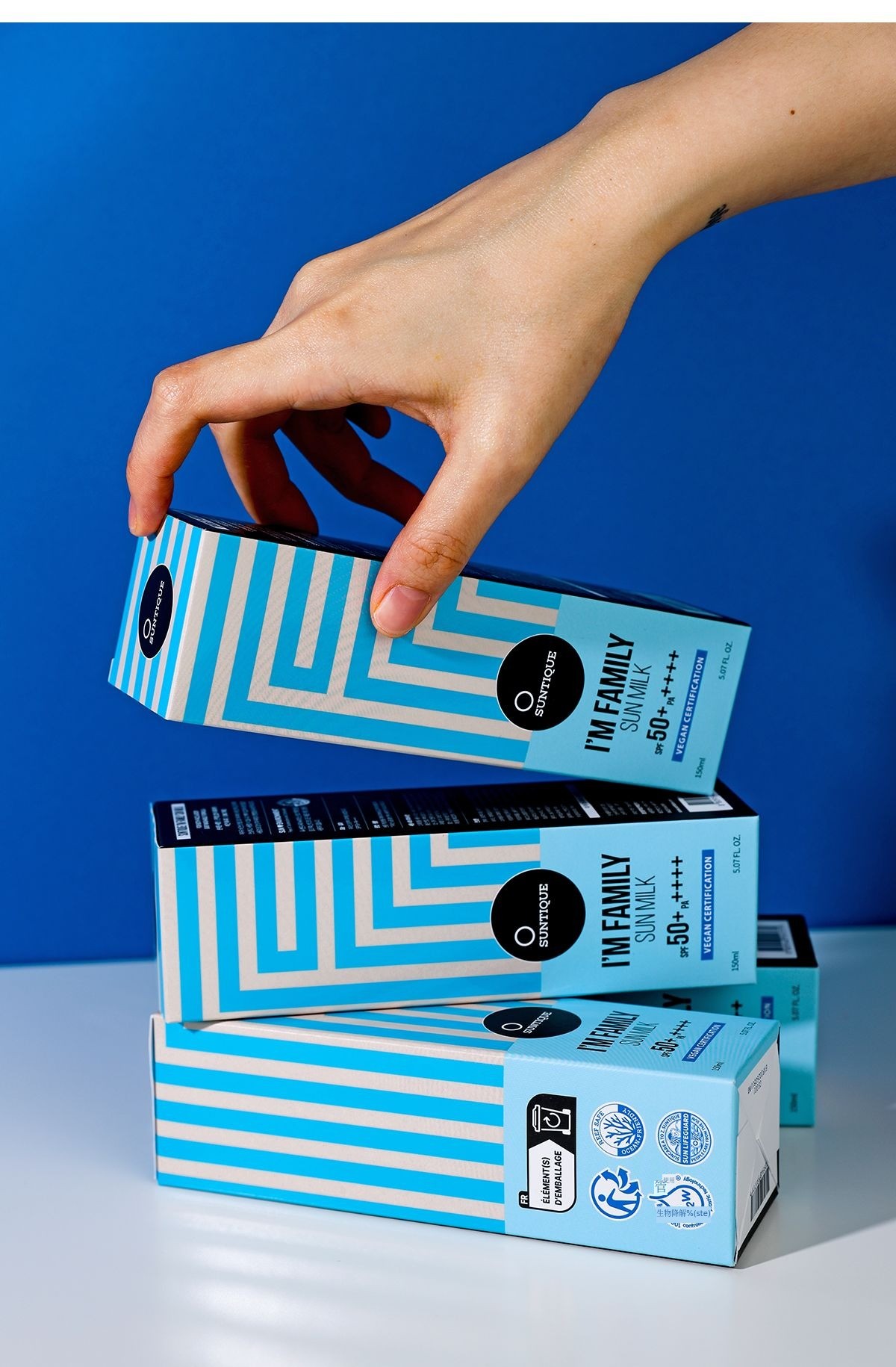 虽然许多化妆品品牌都推出了防晒霜,但我们一直很好奇。因为从皮肤娇嫩的儿童到年长的老人,每个人暴露在阳光下的情况都不同,防晒产品也应该多样化。正是基于这样的思考,我们开始了产品开发,于是诞生了Suntique这个品牌。