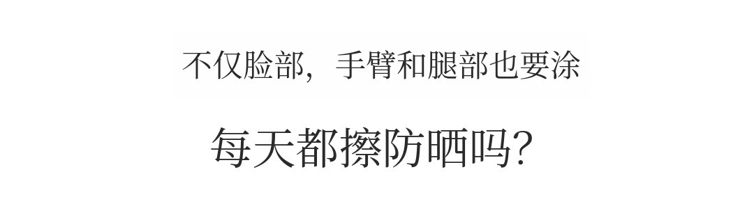 现在,不要吝啬,不仅是脸部,脖子、胸部、手臂、腿部 所有暴露在阳光下的部位都请用它来防护紫外线。