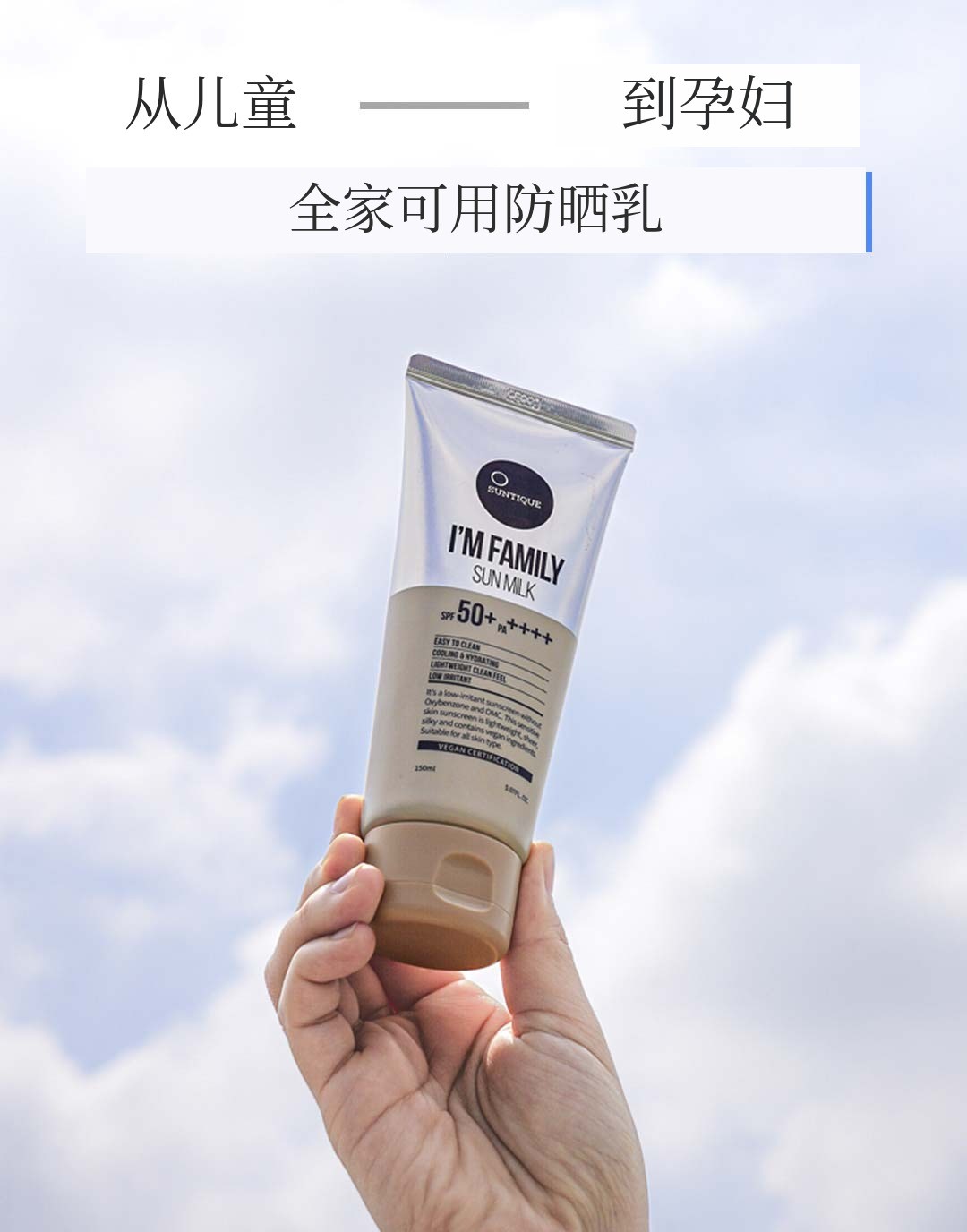 以无负担的价格,只含有真正优质成分,让所有人都能使用的I'm Family防晒乳。