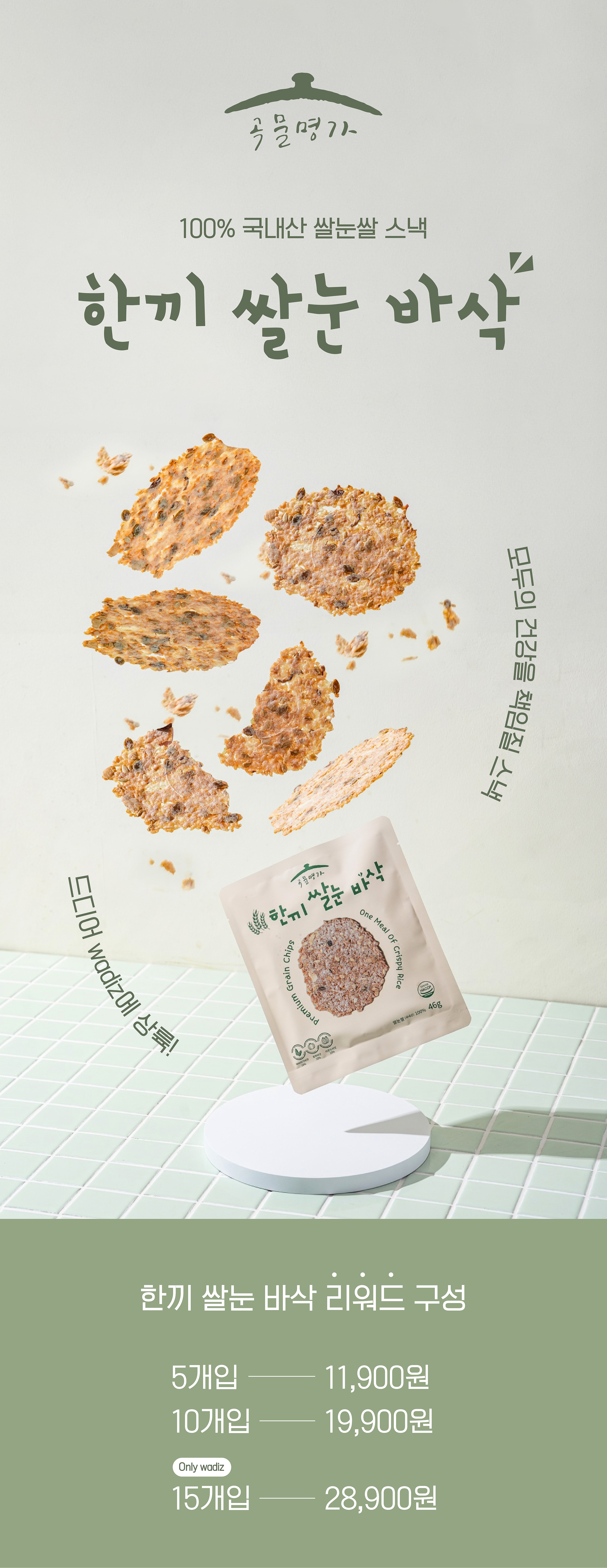 1. 🍚 100%国产米胚芽锅巴零食 - 采用国产米胚芽和锅巴制成的健康酥脆零食 2. 🌰 坚果丰富健康零食 - 含杏仁、葵花籽和南瓜籽,营养丰富 3. 🎁 Wadiz独家15包套装 - 限量优惠价格独家提供