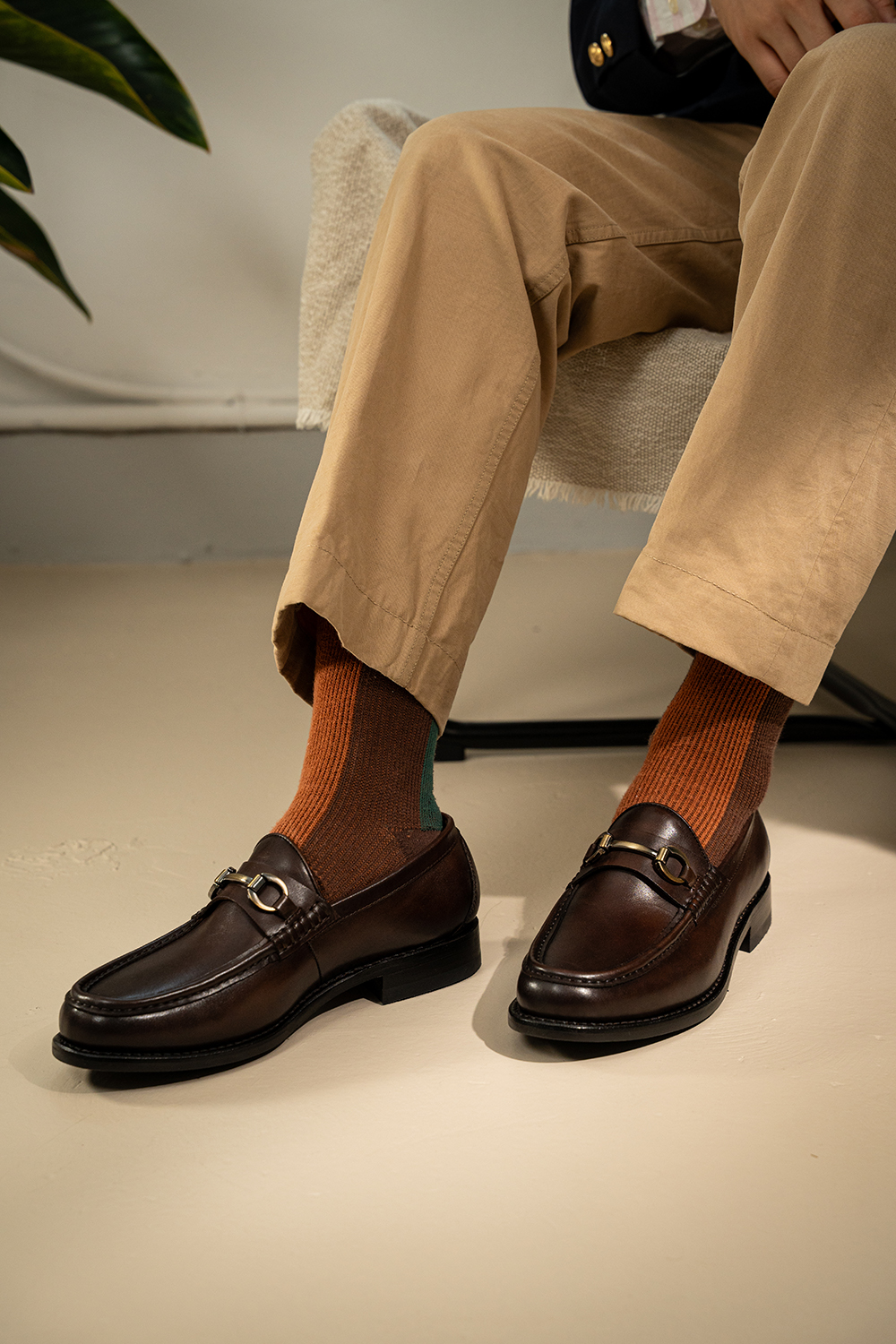 (株)Shoesnine并不是单纯将海外制造的商品进口并在国内流通的流通企业。开发适合韩国人脚型的鞋楦 并应用于适合韩国市场的设计,采用固特异沿条工艺和Patina染色技术 并不断努力改善穿着感,最终开发出功能性中底并完成了实用新型注册。将所有这些成果结合起来,委托最能为韩国男性制作合适产品的制造工厂进行OEM生产。印尼工厂是专注于固特异沿条工艺和Patina染色 的手工鞋工厂。