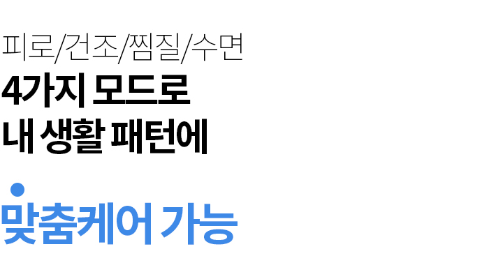 * 热敷温度会根据使用环境有所不同。夏季室内温度较高时使用,以热敷模式为基准, 温度可升至42~45度,冬季则为40~42度。