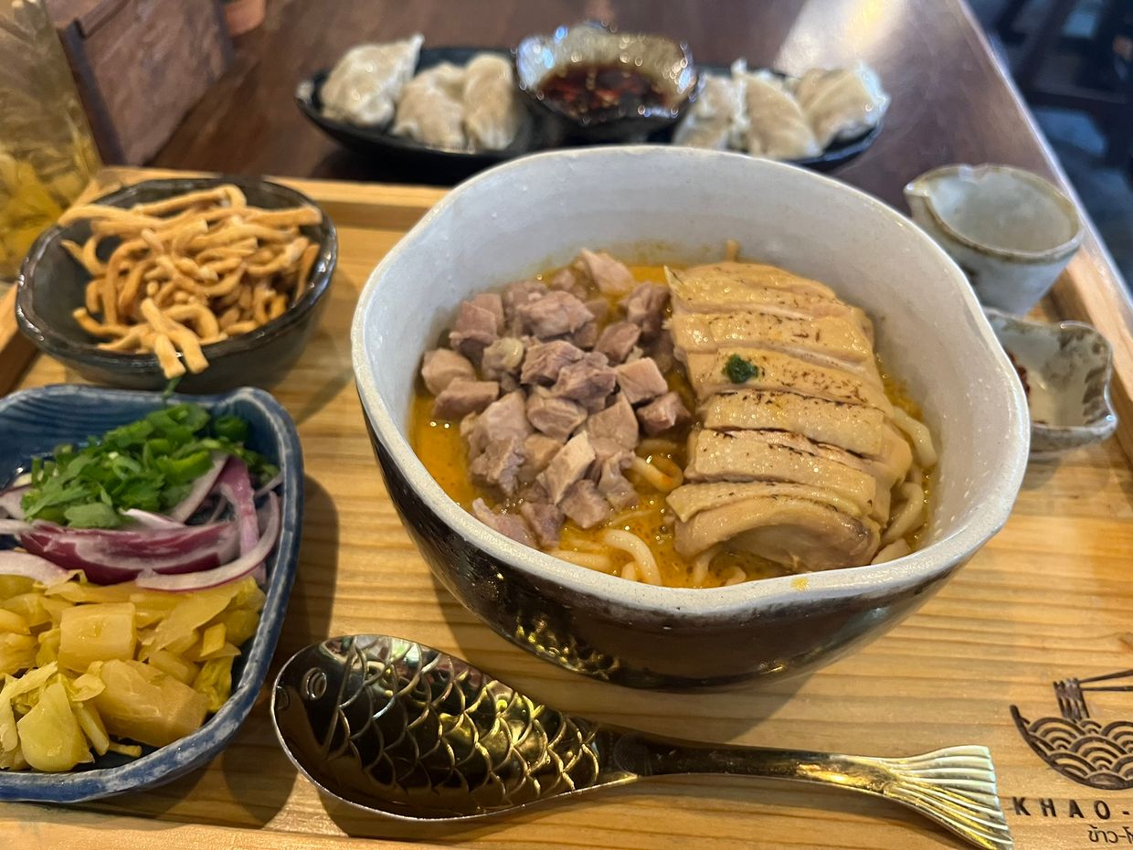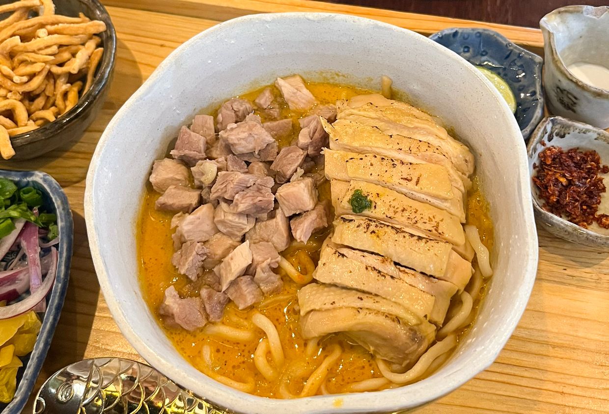 考索伊是用咖喱酱、椰奶、辣椒、姜黄、洋葱等制作的料理,虽然是以咖喱为主料的面食,但与日本的咖喱乌冬又是另一种有魅力的美食。