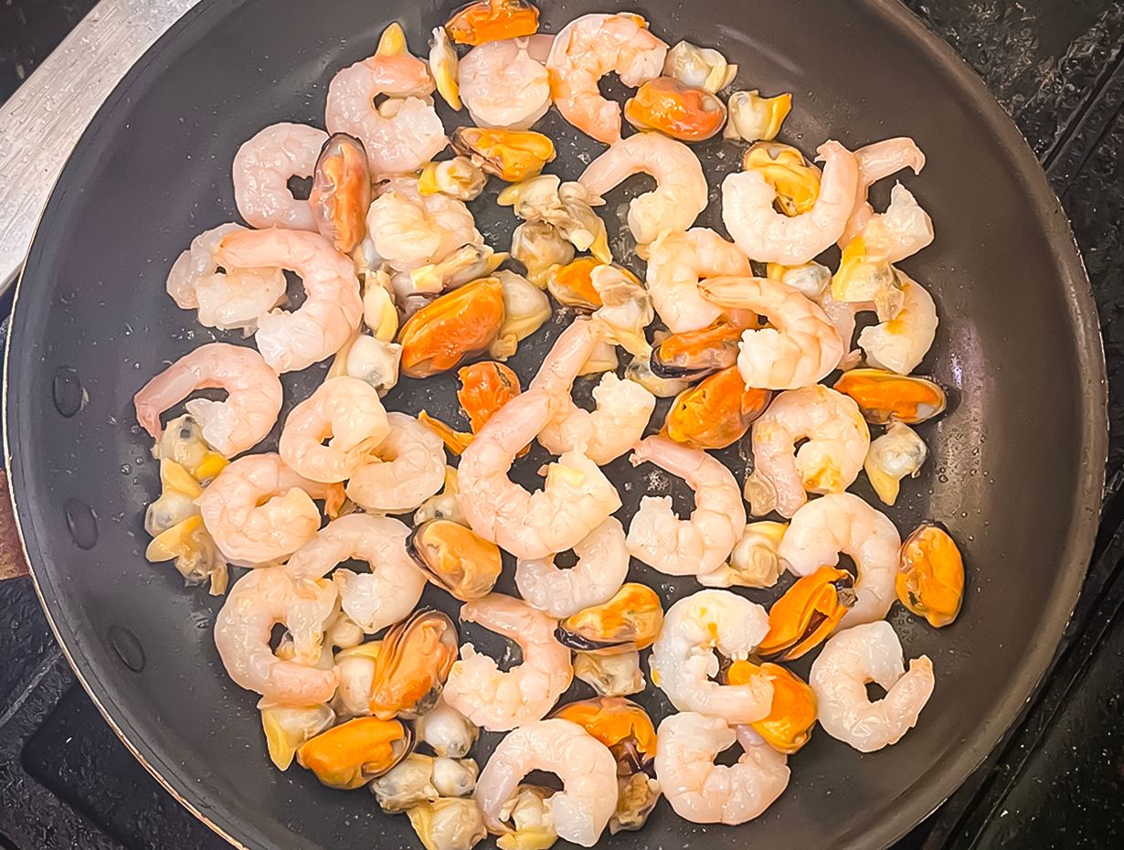 最后是加入了鱿鱼、青口和虾的海鲜版本。是为不吃肉或更喜欢海鲜的人准备的选项。